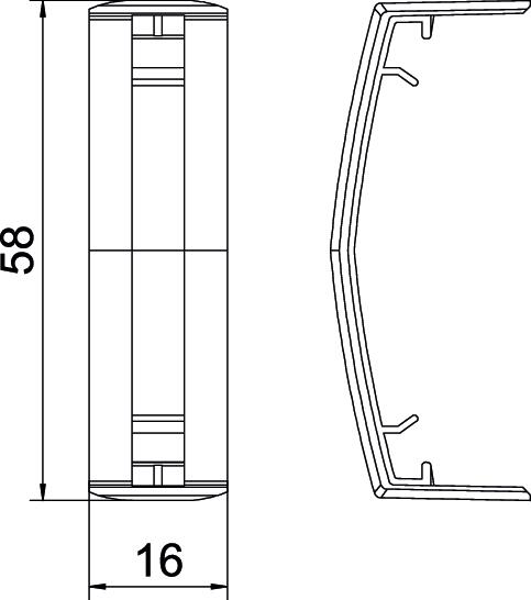 Couleur blanc pur; RAL 9010 Dimension 58x16x23,1 Empreinte CO2 (GWP) du berceau à la porte 0,0138 kg CO2e / 1 Pièce Hauteur 23 mm Indice de protection IP40 Indice de protection code IK IK07 Largeur 16 mm Matériau Acrylonitrile-Styrène-Acrylester Plage de températures d’utilisation max. 60 °C Plage de températures d’utilisation min. 5 °C Sans halogène non - Tous les types