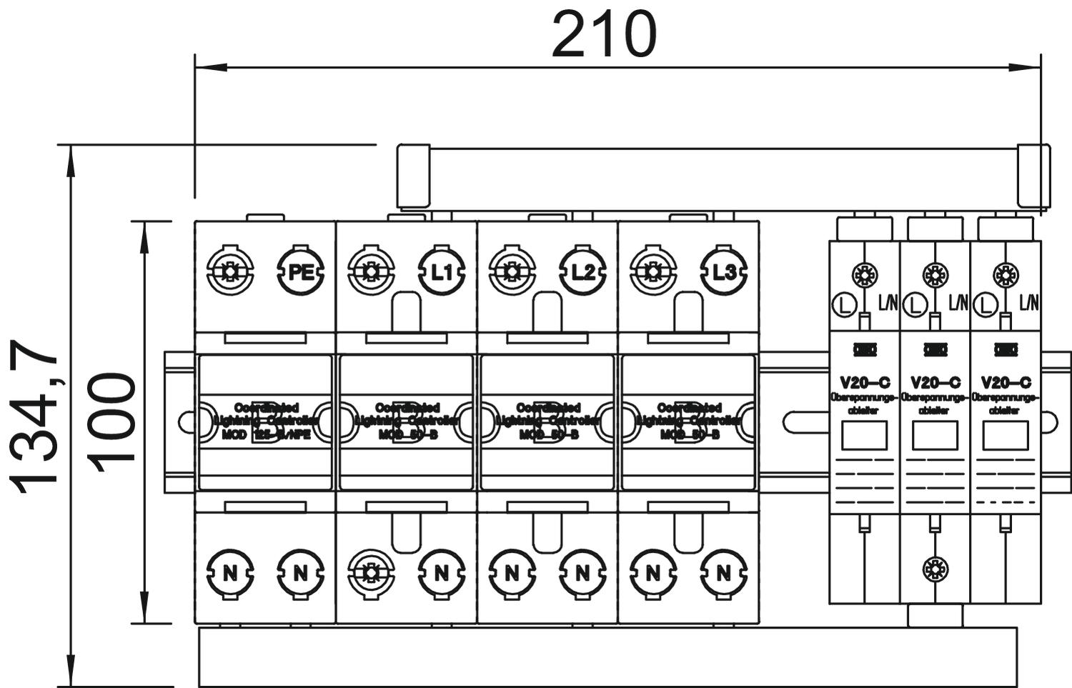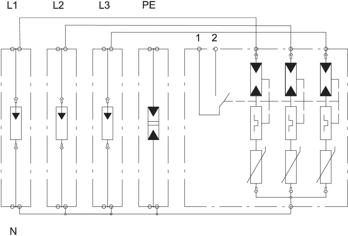 • Capacité d'écoulement jusqu'à 50 kA par pôle et jusqu'à 125 kA entre N-PE en onde 10/350