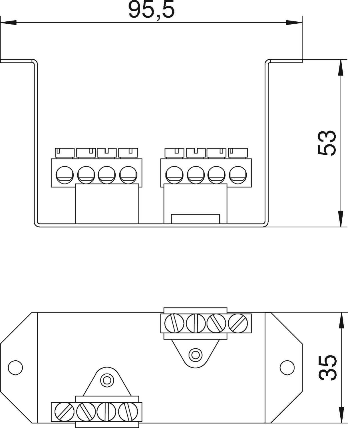 - Elément de base avec rail-chapeau 35 mm, bornier N 4 x 10 mm² et bornier PE 4 x 10 mm²