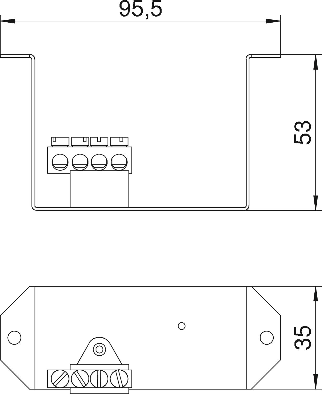 - Elément de base avec rail-chapeau 35 mm et bornier PE 4 x 10 mm²