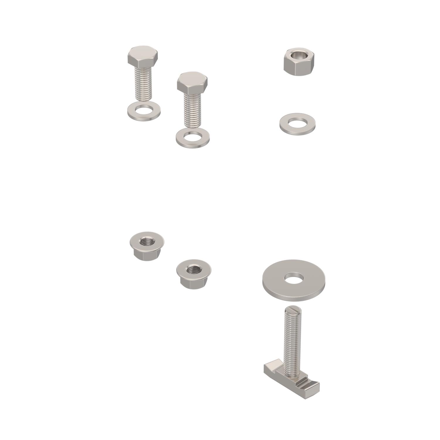 Description du produitKit de vis composé de vis hexagonales M12, d’écrous hexagonaux avec bride M12, de vis à tête marteau et de rondelles. Pour la fixation de bandes perforées type LB FT sur les appuis arrière des supports prémontés du système de montage PV en surface libre.