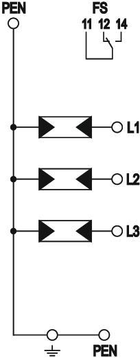 • Capacité d'écoulement du courant de foudre jusqu'à 25 kA (10/350) sur 3 pôles