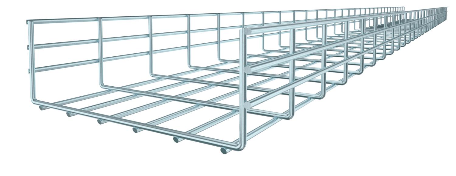 Description du produitChemin de câbles en treillis, en fils d'acier soudés par points (hauteur latérale de 105 mm).