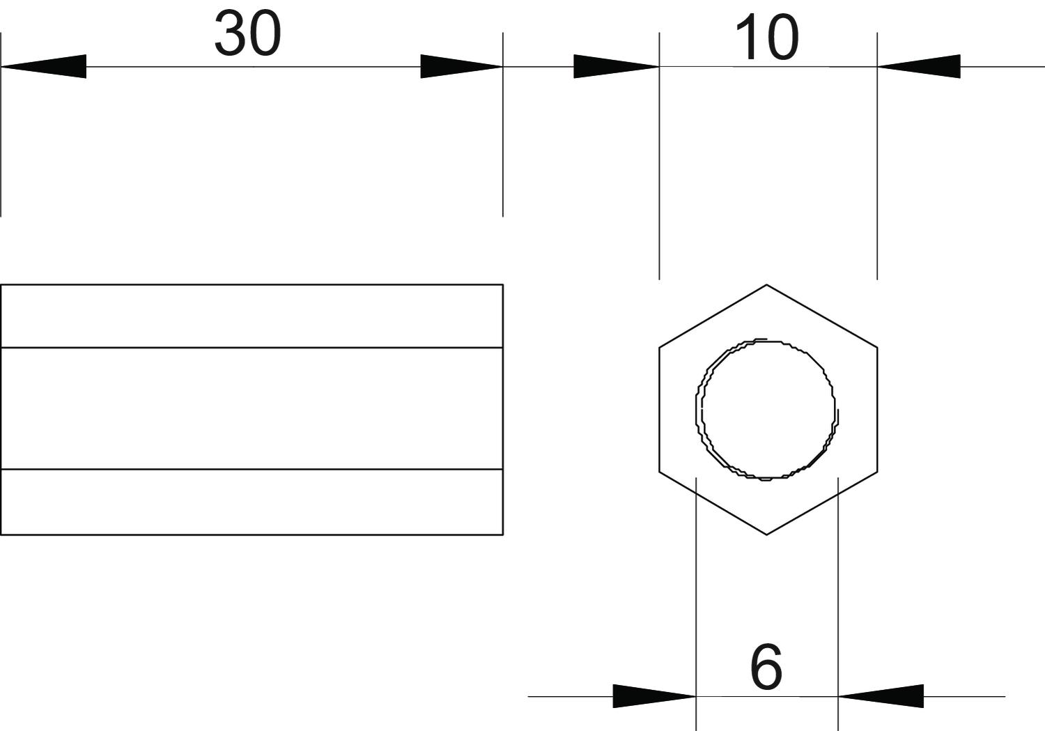 Cote 1 métrique 6 Cote 2 métrique 6 Cote L 30 mm Dimension M6x30mm Empreinte CO2 (GWP) du berceau à la porte 0,0562 kg CO2e / 1 Pièce Filetage M6 Filetage traversant oui forme hexagonale hexagonal oui Longueur 30 mm Matériau Zinc moulé sous pression Méplat 10 Surface galvanisé - Tous les types