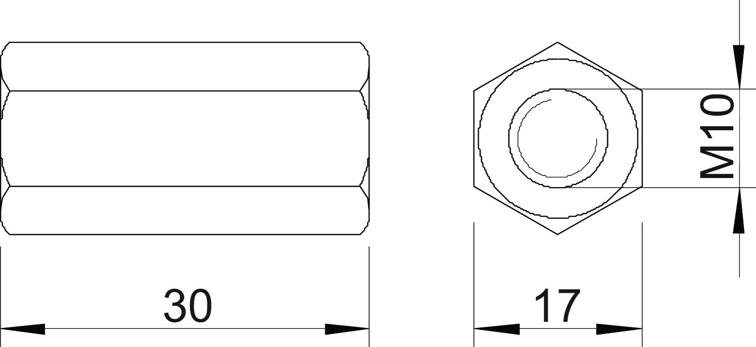 Cote 1 métrique 10 Cote 2 métrique 10 Cote L 30 mm Dimension M10x30mm Empreinte CO2 (GWP) du berceau à la porte 0,2881 kg CO2e / 1 Pièce Filetage M10 Filetage traversant oui forme hexagonale hexagonal oui Longueur 30 mm Matériau acier inoxydable 1.4301 Méplat 17 Surface nu, traité - Tous les types