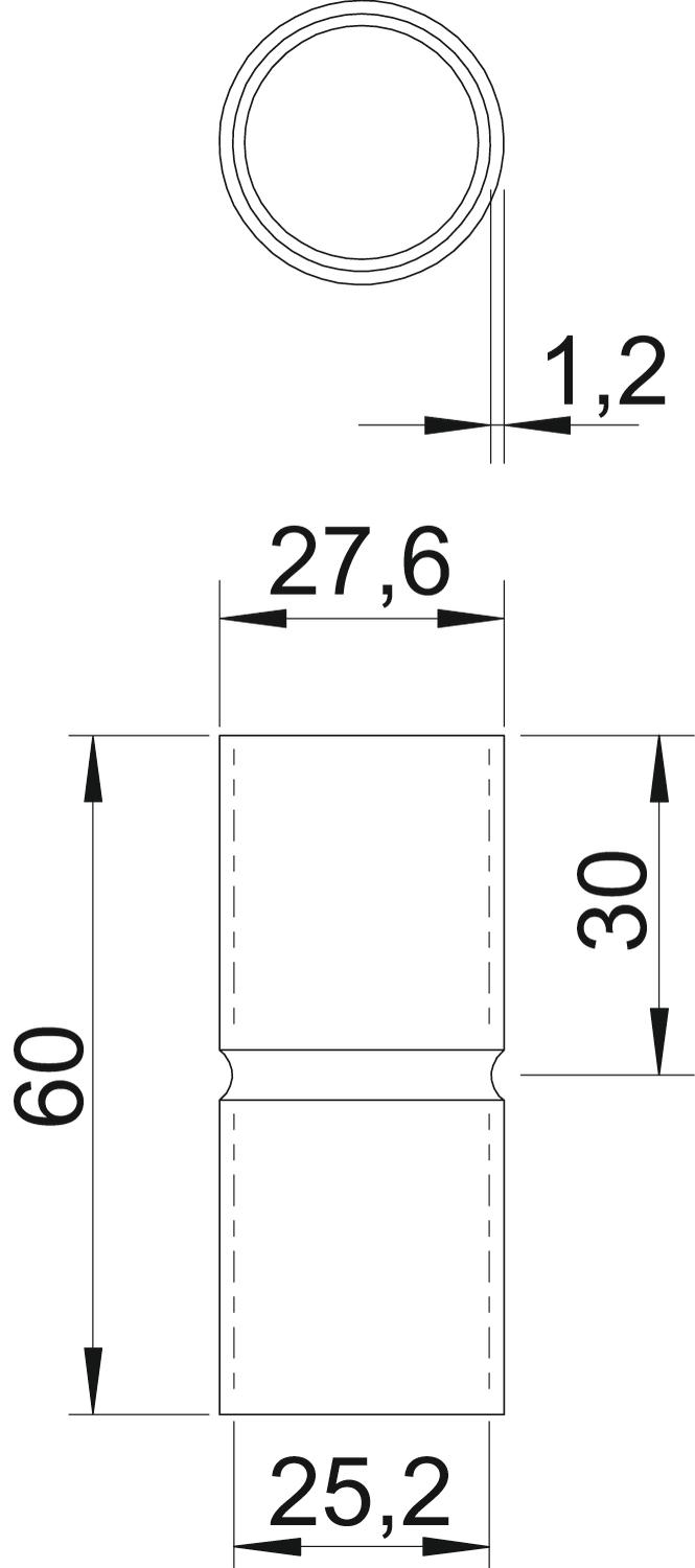 Avec ouverture d'inspection et couvercle non Cote D 27,6 mm Cote d 25,2 mm Cote l 30 mm Cote L 60 mm Cote t 1,2 mm Dimension Ø25mm En deux parties non Longueur 60 mm Matériau Aluminium Modèle Emboîtement Plage de températures d’utilisation max. 250 °C Plage de températures d’utilisation min. -45 °C pour diamètre de tube 25 mm Sans halogène oui Surface brossée non Surface polie non Taille 25 - Tous les types
