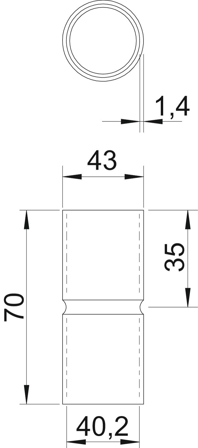 Avec ouverture d'inspection et couvercle non Cote d 40,2 mm Cote D 43 mm Cote l 35 mm Cote L 70 mm Cote t 1,4 mm Dimension Ø40mm En deux parties non Longueur 70 mm Matériau Aluminium Modèle Emboîtement Plage de températures d’utilisation max. 250 °C Plage de températures d’utilisation min. -45 °C pour diamètre de tube 40 mm Sans halogène oui Surface brossée non Surface polie non Taille 40 - Tous les types