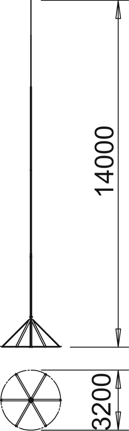 Cote B 3200 mm Cote L 14000 mm Dimension 14000mm Dimension d min. 85 mm Longueur 14000 mm Matériau acier inoxydable 1.4301 Modèle Tige de captage avec trépied Modèle isolé haute tension non Raccordement Conducteur rond - Tous les types
