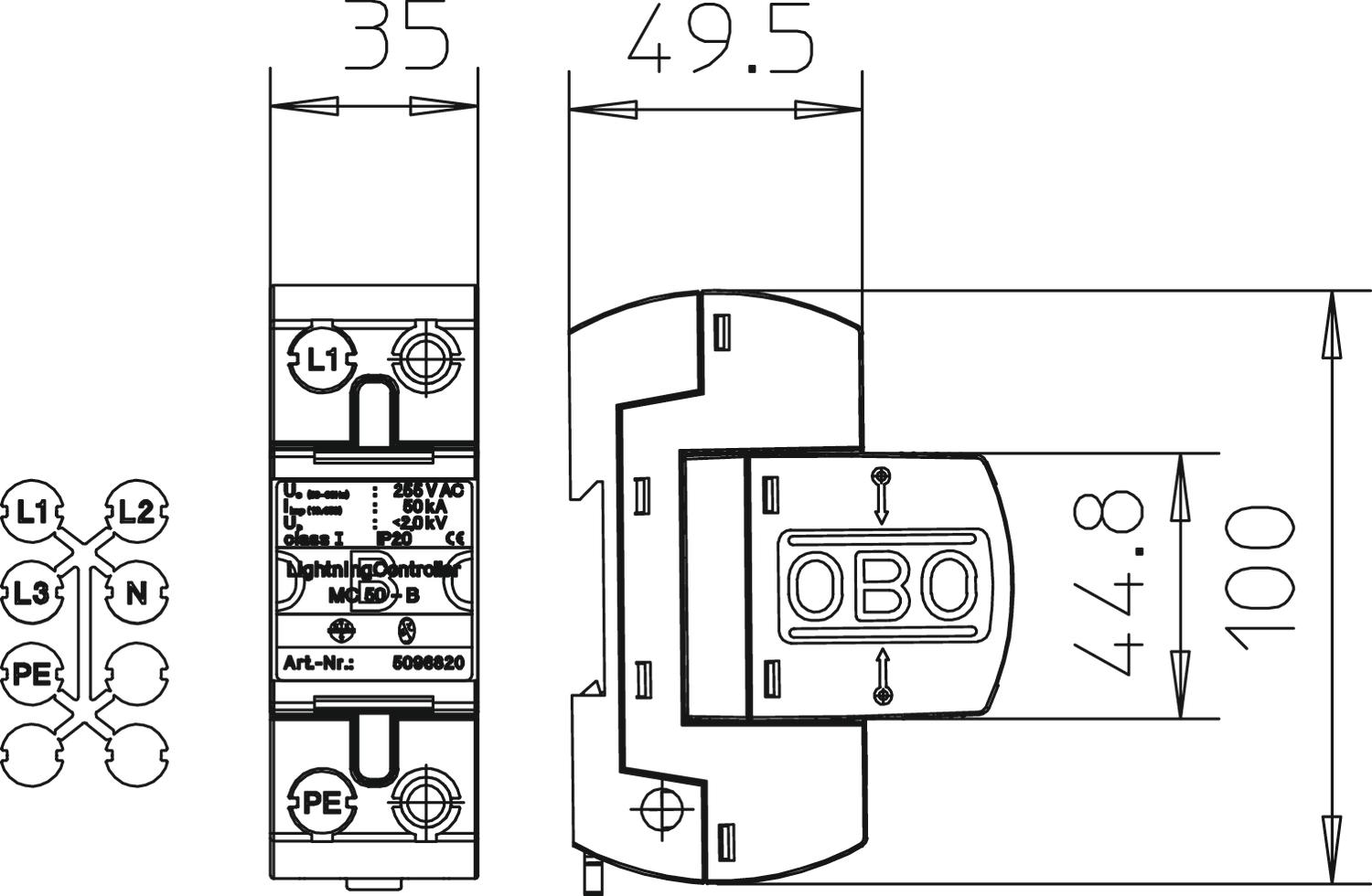 Description du produitParafoudre type 1 selon la norme DIN EN 61643-11 pour l’interface 0 à 1 (LPZ) conformément au concept des zones de protection contre la foudre selon la norme CEI 61312-1, ou VDE 0185-305 (CEI 62305)