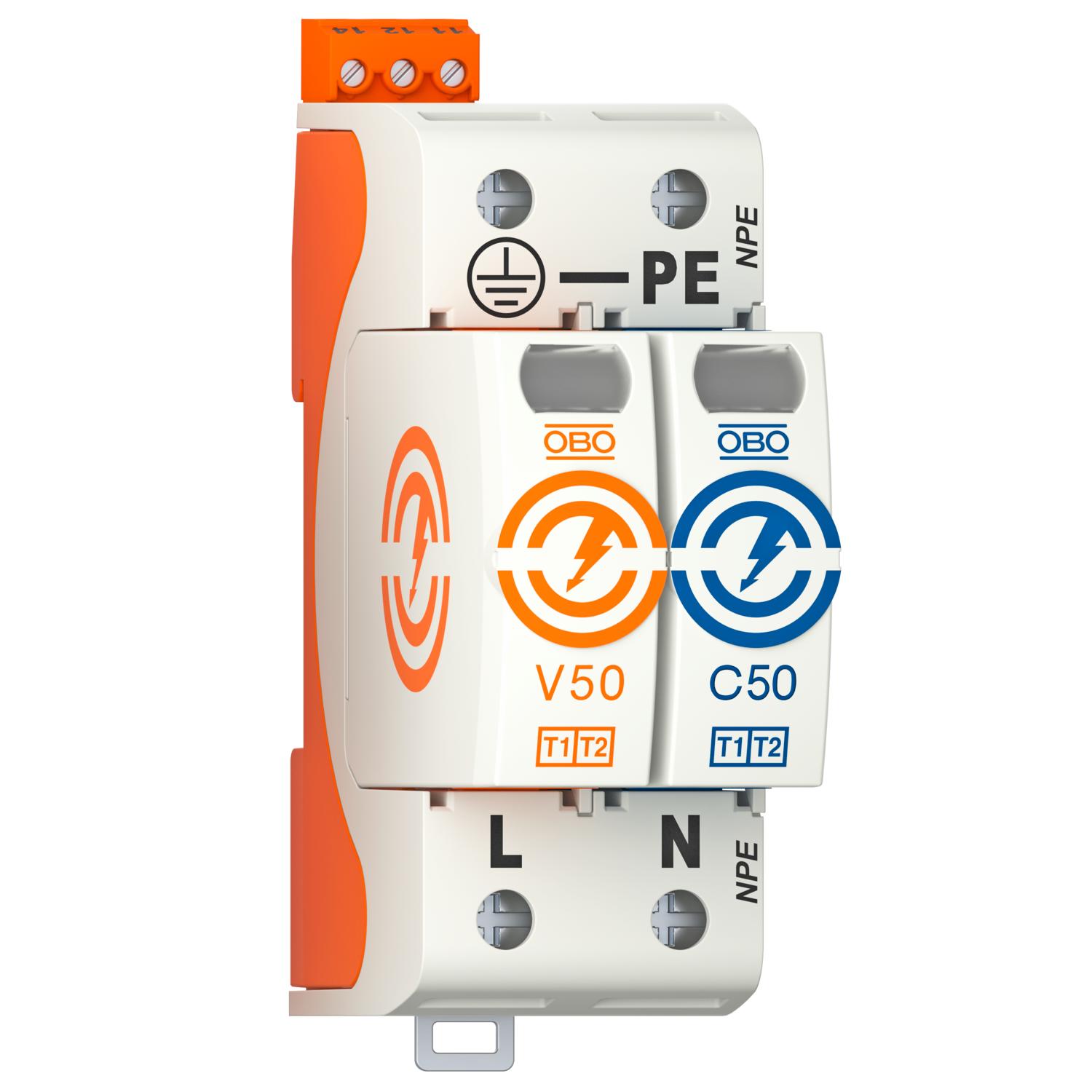 Description du produitParafoudre combiné type 1+2 • Pour la liaison équipotentielle de protection contre la foudre selon NF EN 62305 (IEC 62305) • Capacité d'écoulement du courant de foudre de 12,5 kA (10/350) par pôle et jusqu'à 50 kA (10/350) au total • Parafoudre modulaire débrochable avec dispositif de coupure dynamique et voyant d'état • Mécanisme de verrouillage des cartouches avec protection contre les vibrations et codage de tension • Plastique retardateur de la flamme selon UL 94 V-0 • Les variantes FS possèdent un contact inverseur libre de potentiel pour le report d'alarme