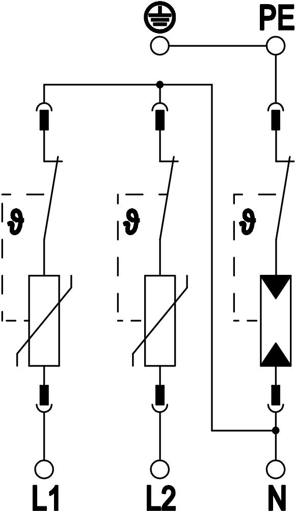 Description du produitParafoudre combiné type 1+2 • Pour la liaison équipotentielle de protection contre la foudre selon NF EN 62305 (IEC 62305) • Capacité d'écoulement du courant de foudre de 12,5 kA (10/350) par pôle et jusqu'à 50 kA (10/350) au total • Parafoudre modulaire débrochable avec dispositif de coupure dynamique et voyant d'état • Mécanisme de verrouillage des cartouches avec protection contre les vibrations et codage de tension • Plastique retardateur de la flamme selon UL 94 V-0 • Les variantes FS possèdent un contact inverseur libre de potentiel pour le report d'alarme