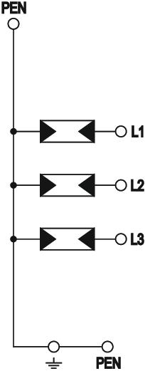 • Capacité d'écoulement du courant de foudre jusqu'à 38 kA (10/350) sur 3 pôles