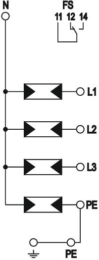 • Capacité d'écoulement du courant de foudre jusqu'à 50 kA (10/350) 3 + NPE