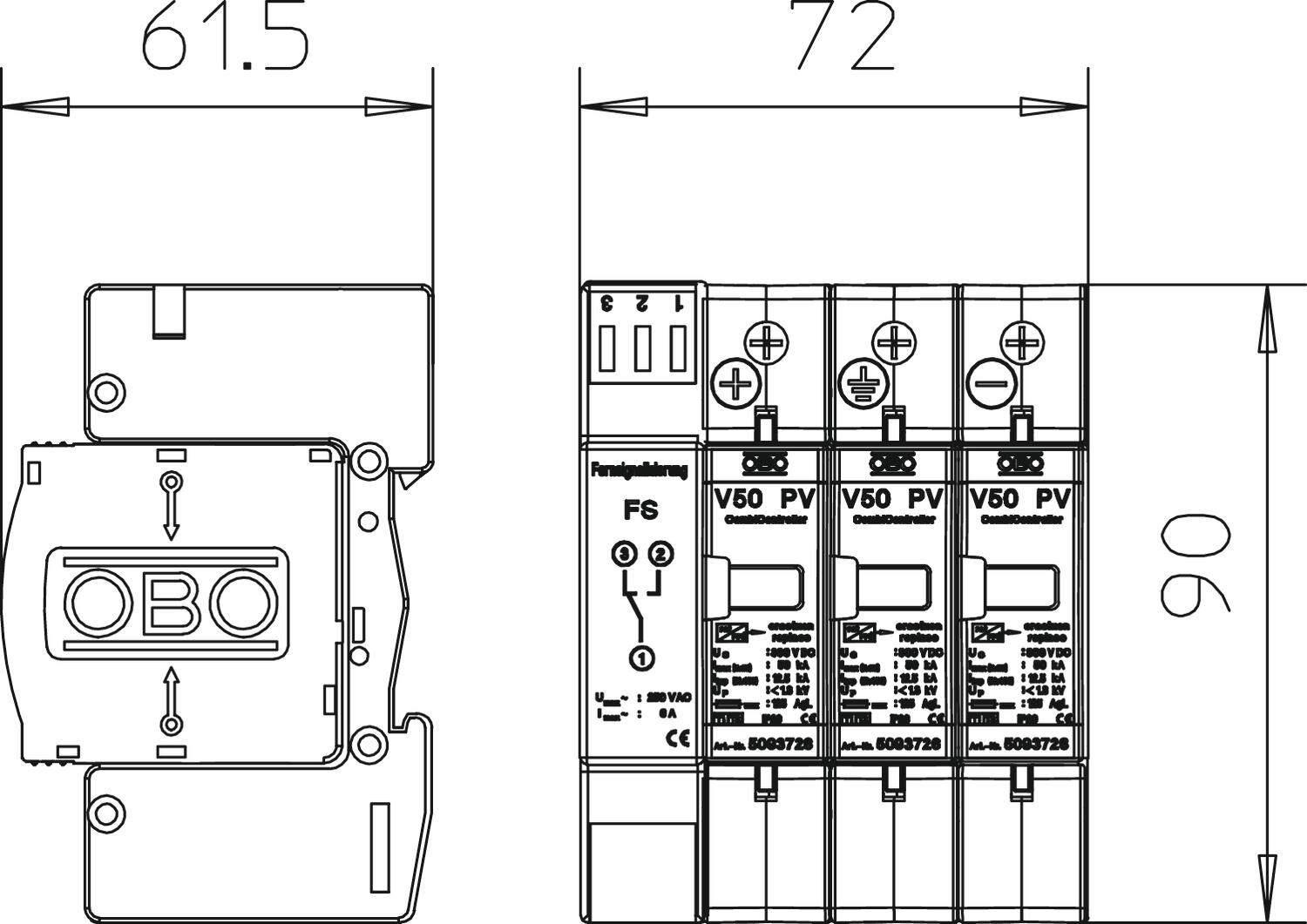 Description du produitParafoudre combiné V50 de type 1+2 pour installations photovoltaïques avec contact FS comme inverseur libre de potentiel