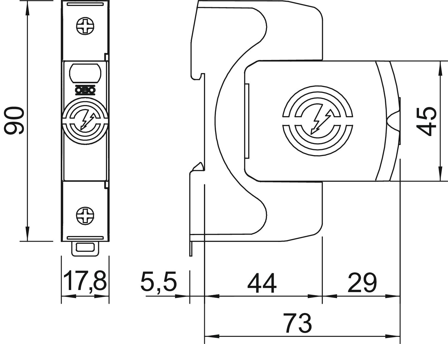 Description du produitParafoudre type 2 • Pour la liaison équipotentielle de protection contre les surtensions selon NF C 15 100 (IEC 60364-4-44) • Capacité d'écoulement jusqu'à 40 kA (8/20) par pôle grâce à des varistances haute performance • Parafoudre modulaire débrochable avec dispositif de coupure dynamique et voyant d'état • Mécanisme de verrouillage avec protection contre les vibrations et codage de tension • Plastique retardateur de la flamme selon UL 94 V-0 • Les variantes FS possèdent un contact inverseur libre de potentiel pour le report d'alarme Application : liaison équipotentielle dans les tableaux généraux et divisionnaires.