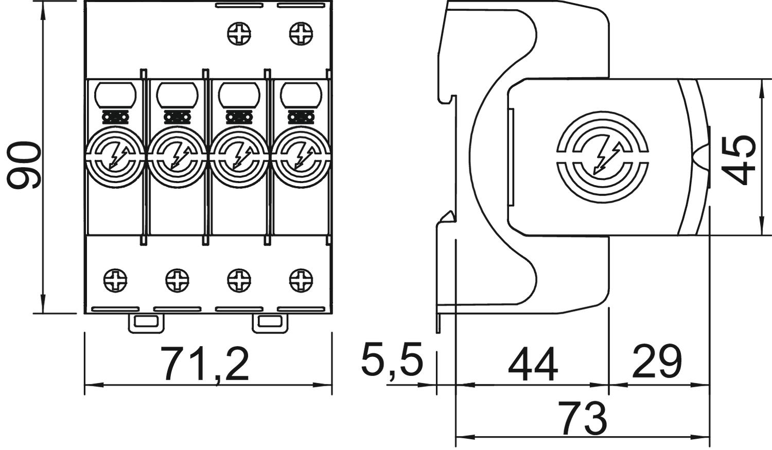 Description du produitParafoudre type 2 • Pour la liaison équipotentielle de protection contre les surtensions selon NF C 15 100 (IEC 60364-4-44) • Capacité d'écoulement jusqu'à 40 kA (8/20) par pôle grâce à des varistances haute performance • Parafoudre modulaire débrochable avec dispositif de coupure dynamique et voyant d'état • Mécanisme de verrouillage avec protection contre les vibrations et codage de tension • Plastique retardateur de la flamme selon UL 94 V-0 • Les variantes FS possèdent un contact inverseur libre de potentiel pour le report d'alarme Application : liaison équipotentielle dans les tableaux généraux et divisionnaires.