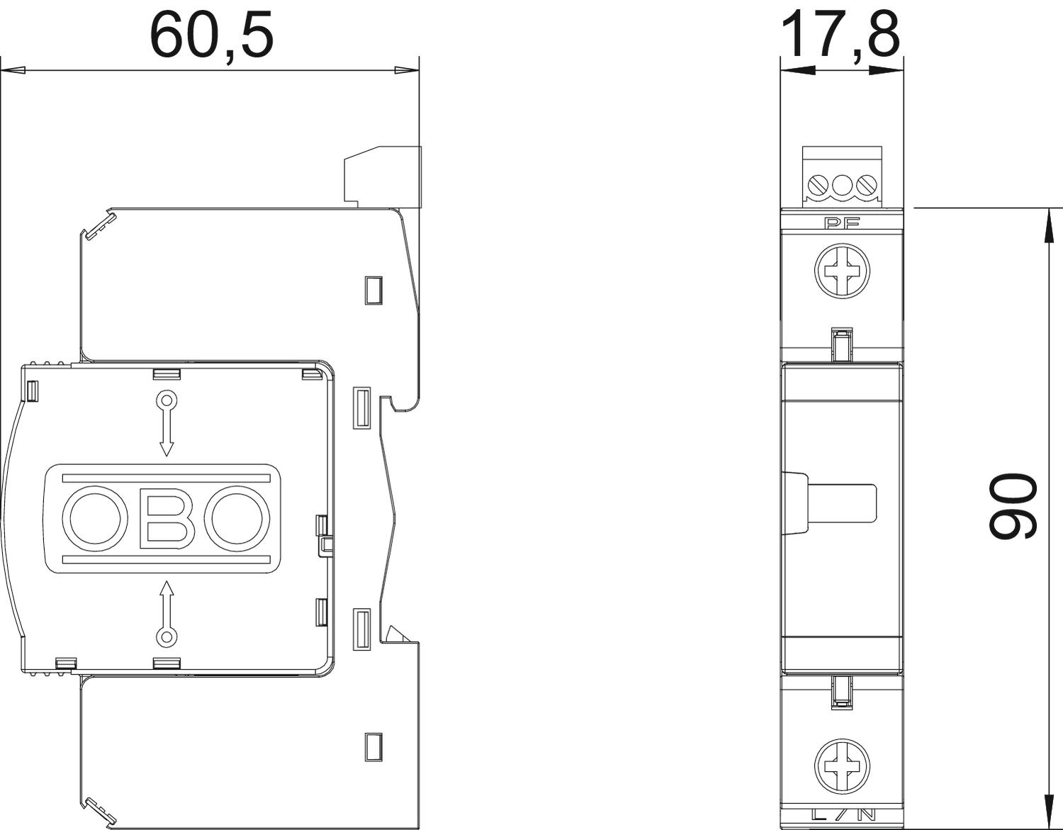 • Parafoudre enfichable avec dispositif de coupure dynamique et voyant d'affichage du fonctionnement