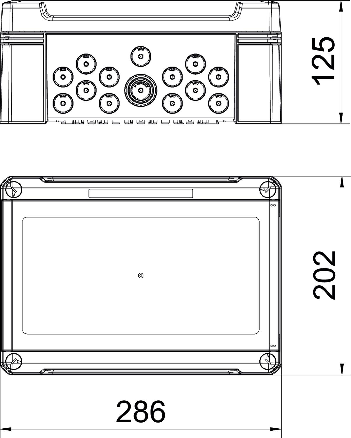 L'indice de protection élevé (IP66) et la structure robuste (IK07 à -25C) garantissent un fonctionnement sûr, y compris dans des conditions environnementales difficiles En cas d'utilisation à l'extérieur sans abri, nous recommandons de protéger le coffret de distribution électrique des intempéries directes par le haut.