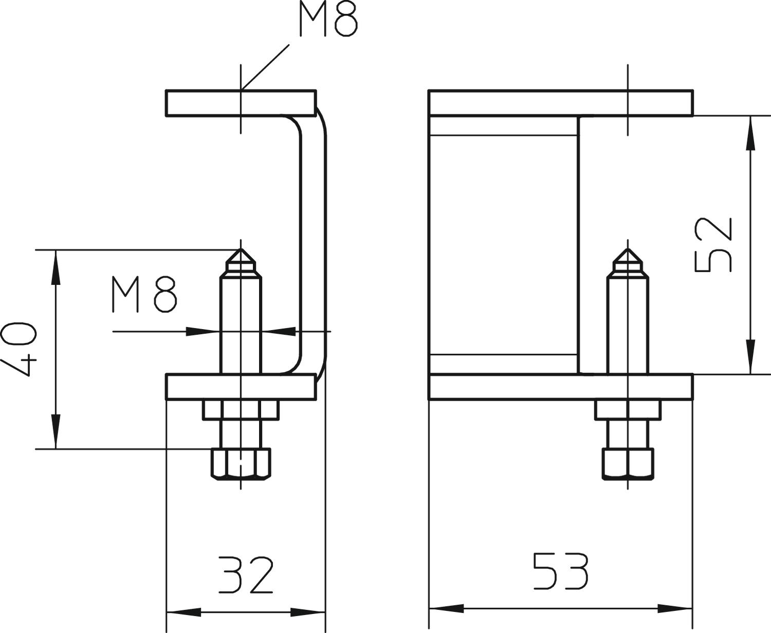 Description du produitPièce de serrage pour la fixation des échelles à câbles sur les poutres métalliques.