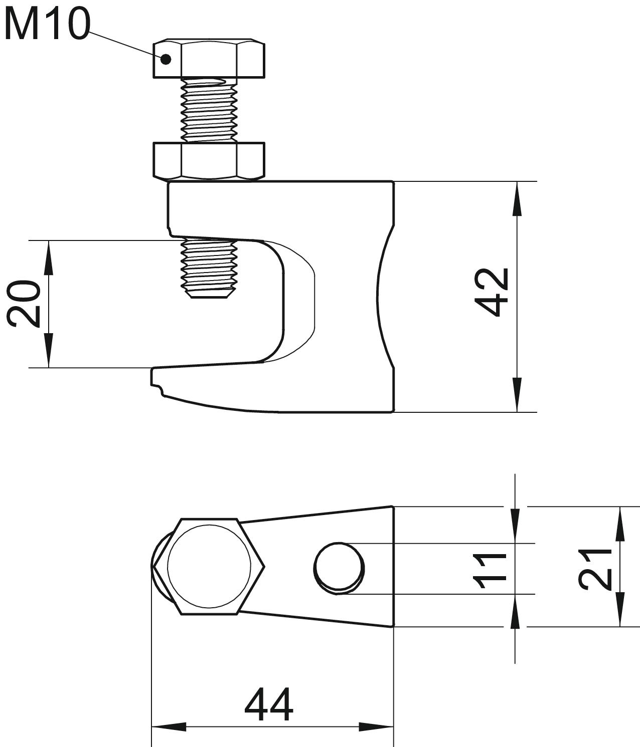 À charnière non Charge de rupture 2,5 kN Charnière ajustable non Convient pour la tige filetée métrique 10 Cote B 21 mm Cote F 20 mm Cote L 44 mm Dimension 0-19mm Dimension G (mm) M10 Dimension H 42 mm Épaisseur de bride F max. 20 mm Filetage, métrique 10 Hauteur 42 mm Largeur 21 mm Longueur 44 mm Matériau fonte malléable Max. Couple de serrage 18 Nm Type de fixation visser Type/élément de raccordement Filetage - Tous les types