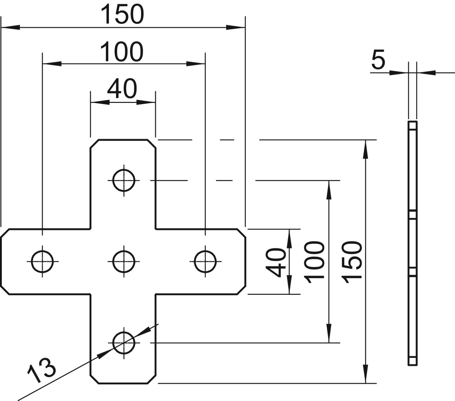 Description du produitEquerres 5 trous pour un raccordement croisé de rails profilés 41 x 41 mm et 41 x 21 mm.