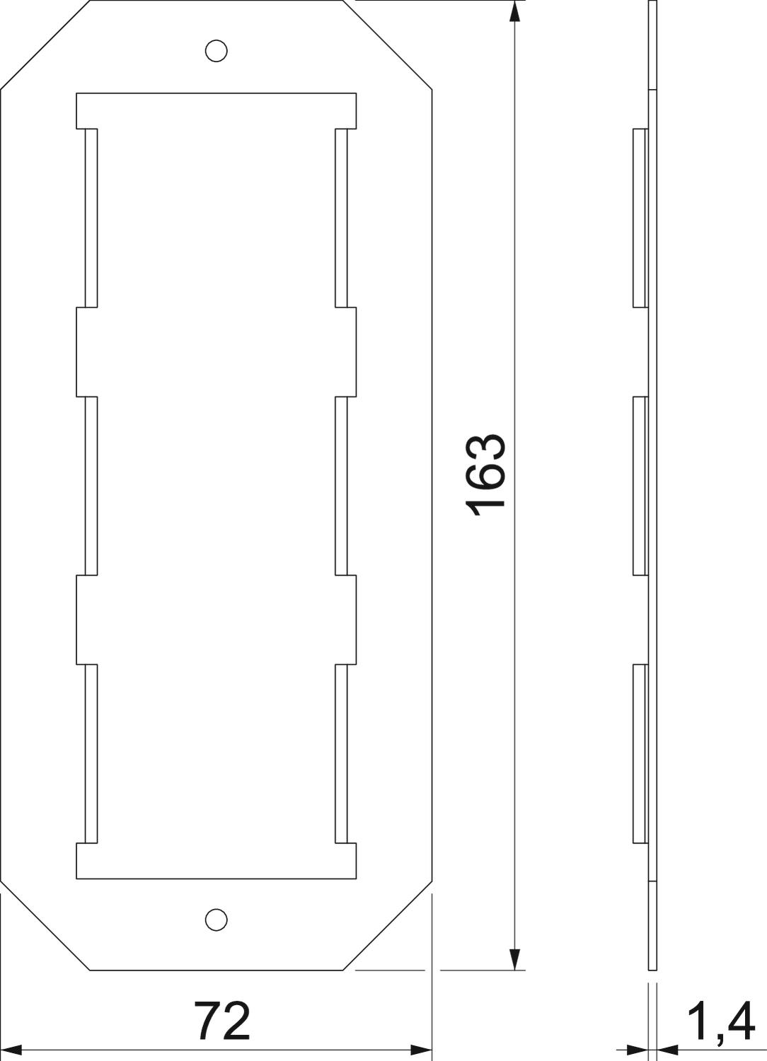Dimension 163x72,5mm Empreinte CO2 (GWP) du berceau à la porte 0,4117 kg CO2e / 1 Pièce Hauteur 1,4 mm Largeur 72 mm Longueur 163 mm Matériau Acier Nombre d'ouvertures carrées 1 - Tous les types