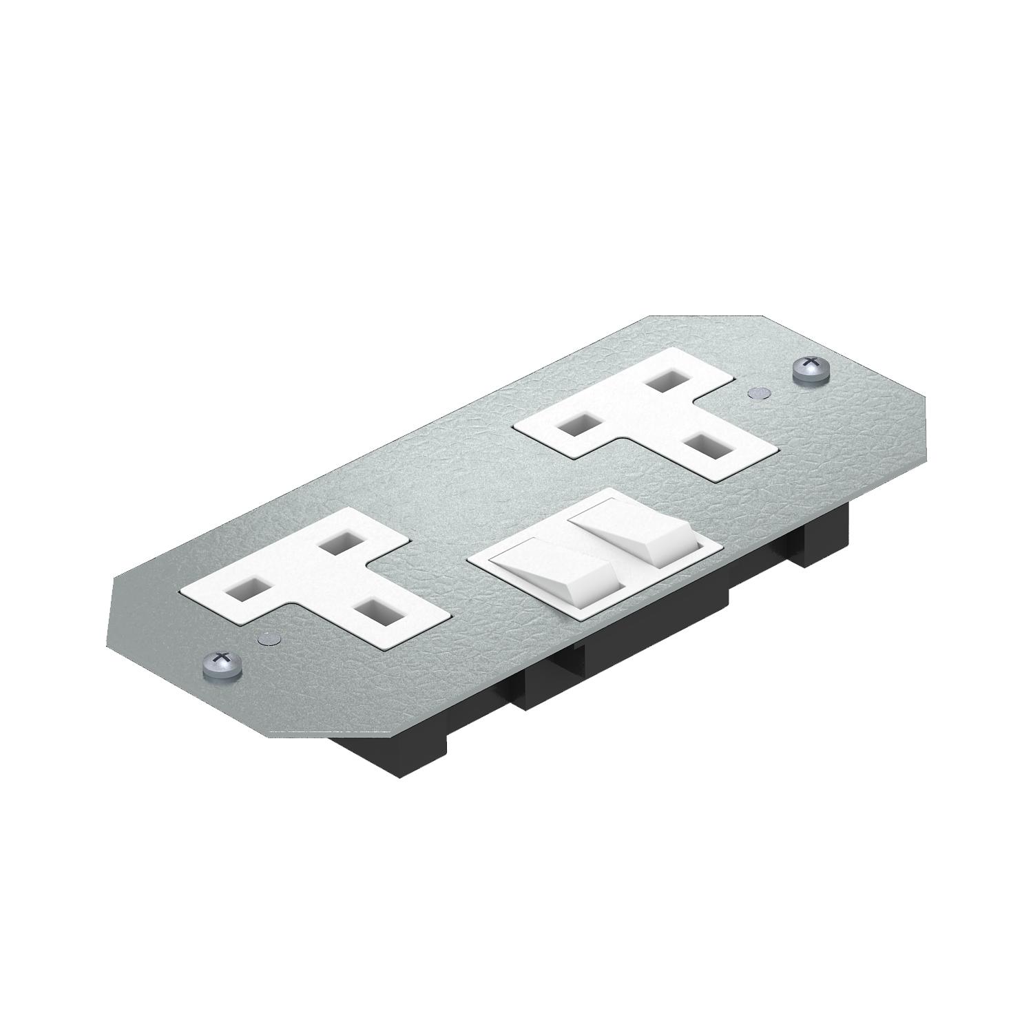 Description du produitPlaque de support d'appareillage avec une prise double couplée pour la pose d'un support de montage sous unités de montage GES et cassettes.