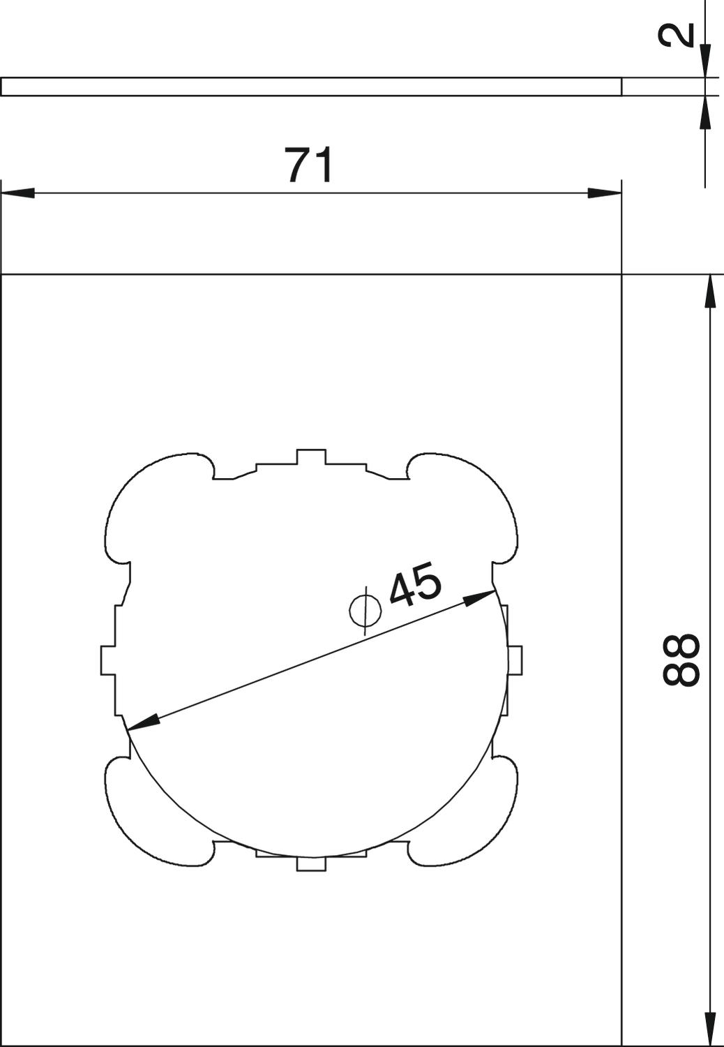 Application Réservoir en saillie Convient pour la zone d'inscription non Couleur noir graphite ; RAL 9011 Couvercle plein non Dimension 71x88mm Empreinte CO2 (GWP) du berceau à la porte 0,0464 kg CO2e / 1 Pièce Hauteur 2 mm Largeur 71 mm Longueur 88 mm Matériau Chlorure de polyvinyle Nombre d'ouvertures simples 1 Porte-étiquette non Possibilité d'installation du joint non Technique d'installation Étrier porteur Type de fixation peut être vissé - Tous les types