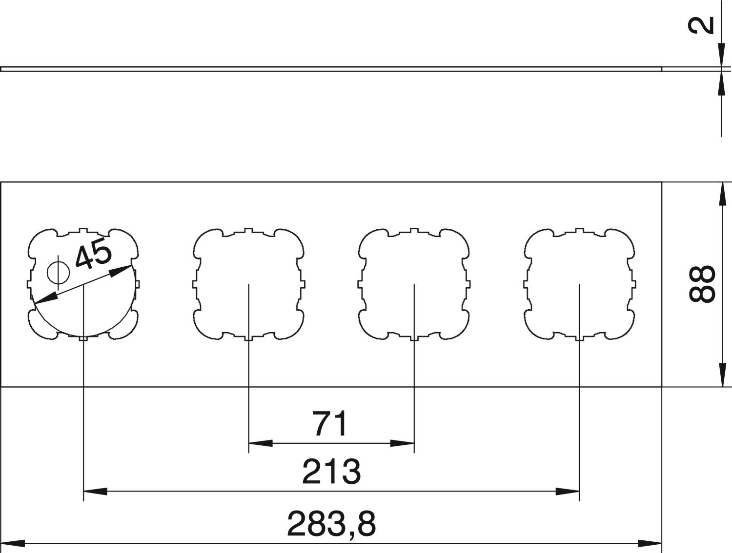 Description du produitPlaque de support d'appareillages avec 4 perçages (Ø 45 mm) pour 4 appareillages à vis ou à griffe, adaptée au côté longitudinal T12L (couvercle 1/1)