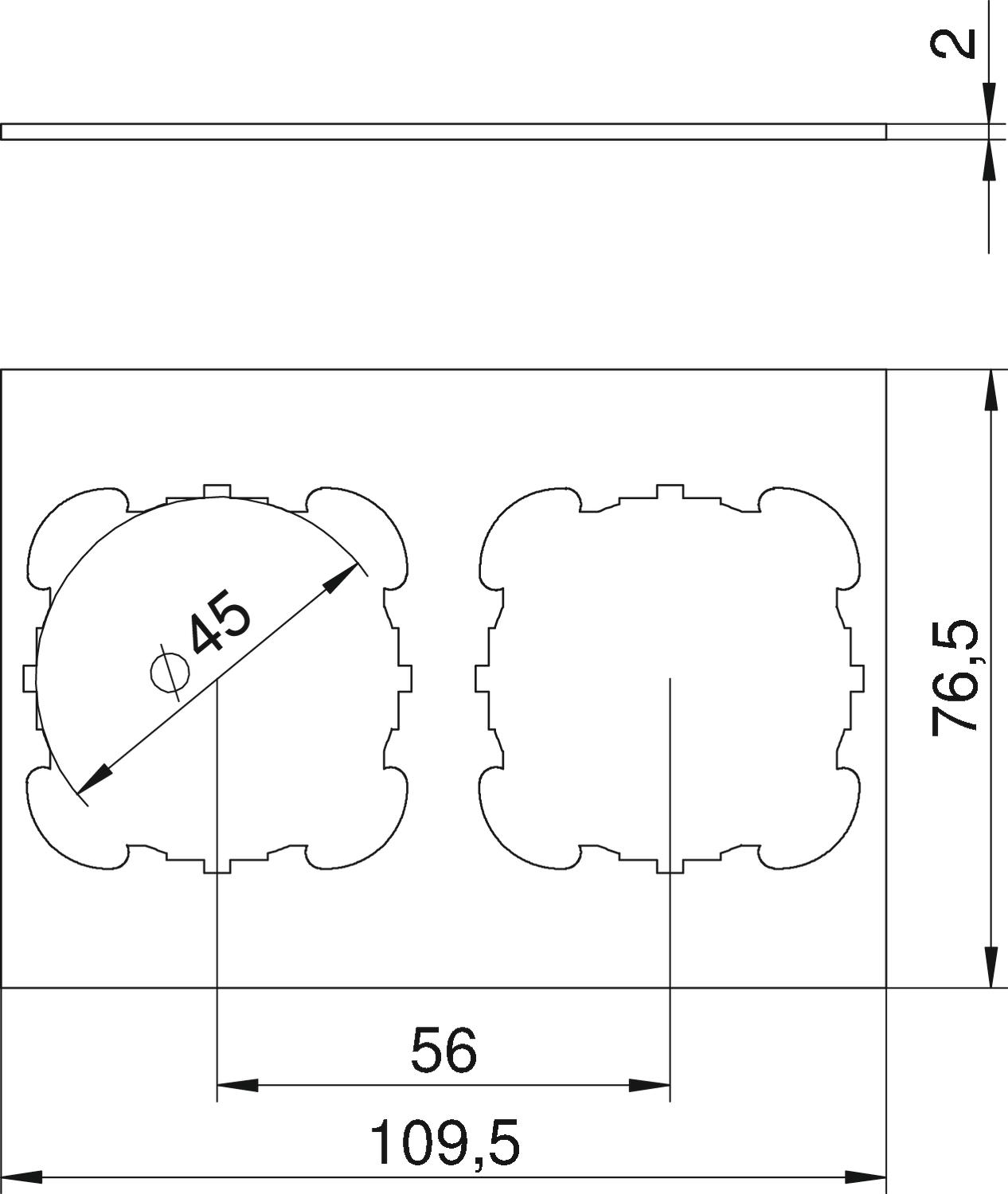 Description du produitPlaque de support d'appareillages avec 2 perçages (Ø 45 mm) pour 2 appareillages à vis (version EK), adaptée au côté longitudinal T4B (couvercle 1/1)