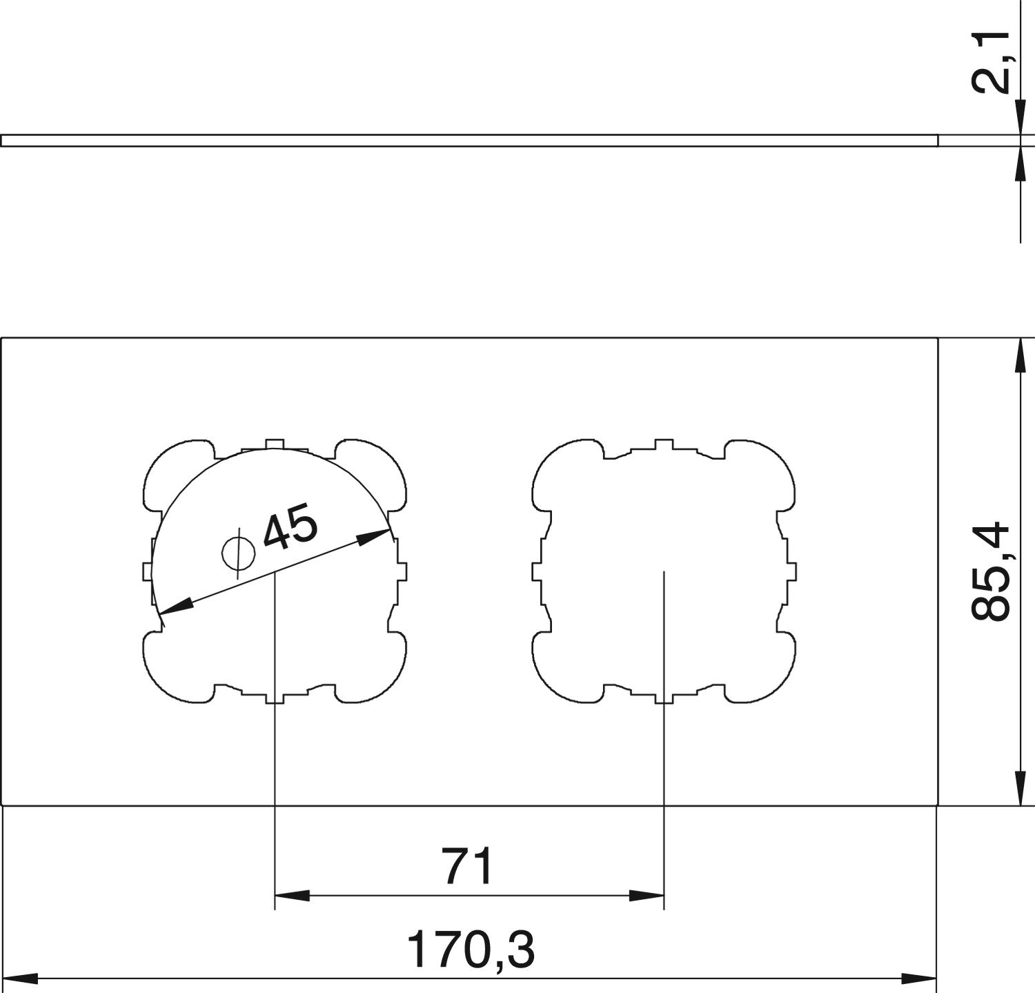 Description du produitPlaque de support d'appareillages avec 2 perforations (Ø 45 mm) pour 2 appareillages avec cadre (à vis), adaptée au grand côté du Telitank T4L et T8NL.