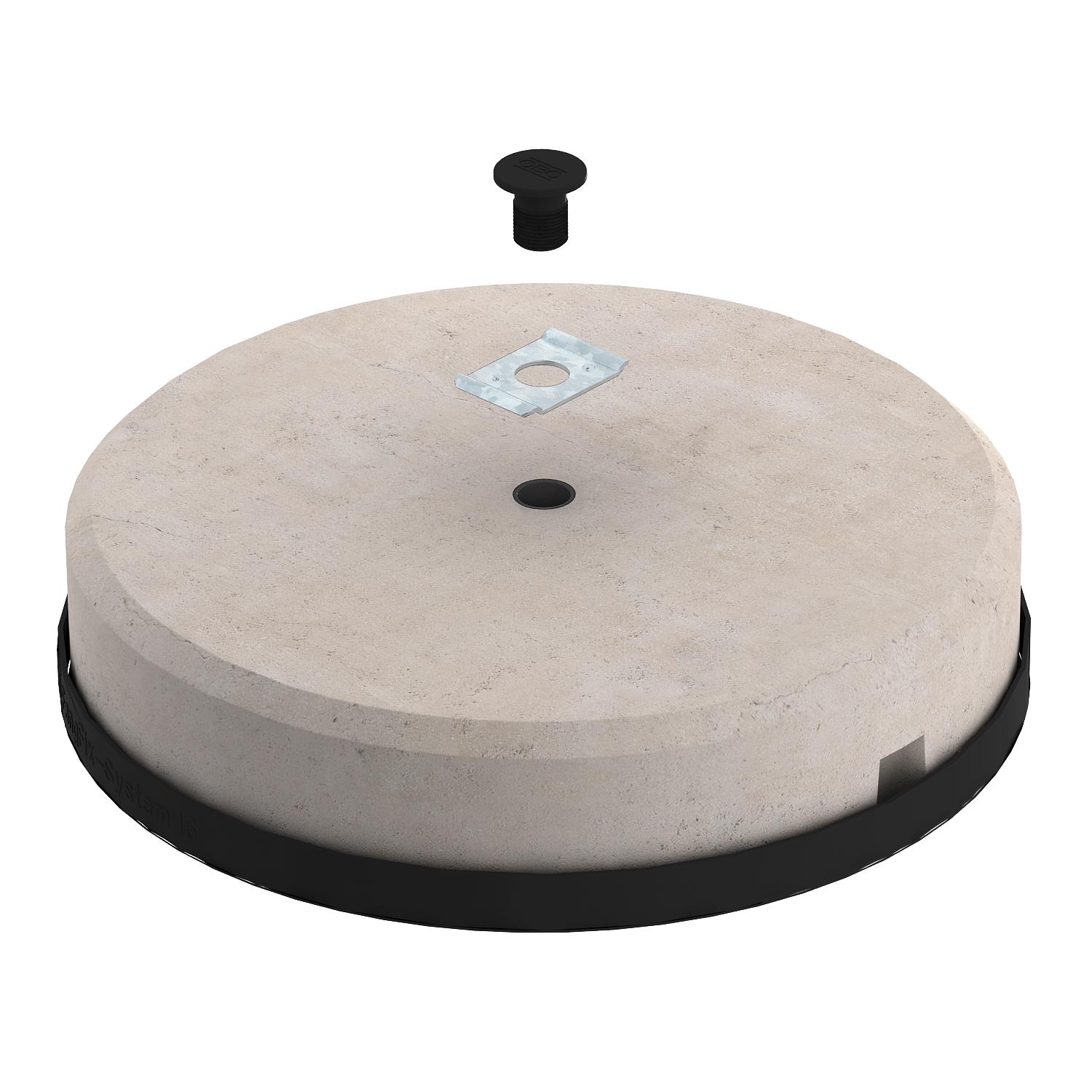 • Kit composé d'une contreplaque TrayFix et d'un plot en béton avec base pour système FangFix de 16 kg