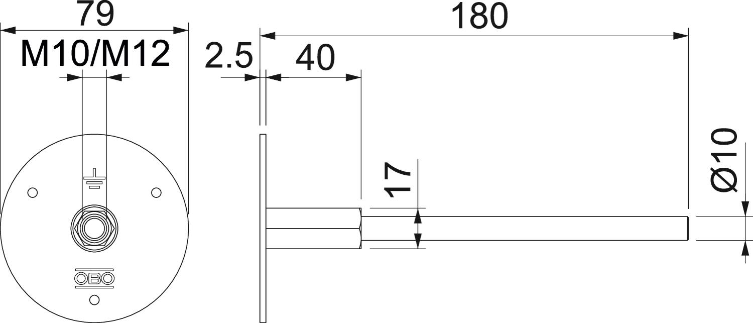Axe de raccordement 10 mm Capacité d’écoulement d’intensité de foudre H/100 kA Courant de court-circuit (50 HZ)(1 s ;≤300 °C) 4,9 kA Diamètre de la plaque de raccordement 79 mm Dimension M10/M12 Empreinte CO2 (GWP) du berceau à la porte 1,2723 kg CO2e / 1 Pièce Filetage M10/M12 Longueur 180 mm Matériau Acier Matériau de l'éclisse de raccordement Acier, galvanisé à chaud Surface galvanisé à chaud par trempage - Tous les types