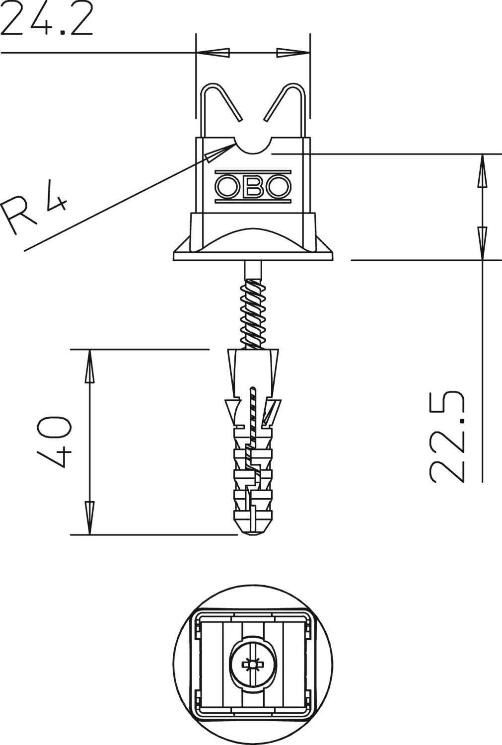 Porte-conducteur pour Rd 8 mm, fixation avec vis et tampon