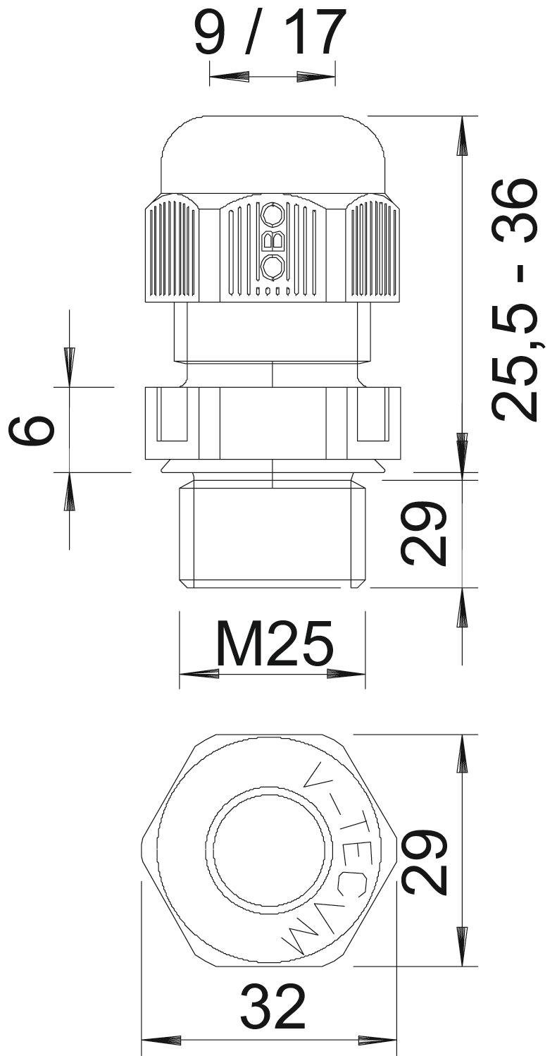 Anti-chocs non Avec contre-écrou non Bague d'étanchéité à usage multiple non Capacité d’étanchéité D max. 16 mm Capacité d’étanchéité D min. 11 mm Cote L1 11 mm Cote L2 4 mm Cote L3 17 mm Dimension M25 Dimension E 30 mm Dimension L max. 29,5 mm Eclateur antidéflagrant non Empreinte CO2 (GWP) du berceau à la porte 0,1213 kg CO2e / 1 Pièce Filetage M25 x 1,5 Indice de protection IP68 Longueur de filetage 11 mm Matériau laiton Méplat 27 Modèle droit Plage de températures d’utilisation max. 100 °C Plage de températures d’utilisation min. -20 °C Possibilité de décharge de traction oui Pour zone explosive sans Presse-étoupe pour câbles plats non Protection antiflexion non Renforcé par fibres de verre non Sans halogène non Surface nickelé Type d'étanchéité Bague d'étanchéité Type de filetage métrique - Tous les types