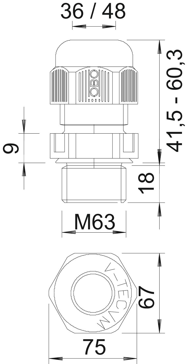 Anti-chocs non Avec contre-écrou non Bague d'étanchéité à usage multiple non Capacité d’étanchéité D max. 42 mm Capacité d’étanchéité D min. 32 mm Cote L1 14 mm Cote L2 5 mm Cote L3 31 mm Dimension M63 Dimension E 65 mm Dimension L max. 44,5 mm Eclateur antidéflagrant non Empreinte CO2 (GWP) du berceau à la porte 0,8158 kg CO2e / 1 Pièce Filetage M63 x 1,5 Indice de protection IP68 Longueur de filetage 14 mm Matériau laiton Méplat 65 Modèle droit Plage de températures d’utilisation max. 100 °C Plage de températures d’utilisation min. -20 °C Possibilité de décharge de traction oui Pour zone explosive sans Presse-étoupe pour câbles plats non Protection antiflexion non Renforcé par fibres de verre non Sans halogène non Surface nickelé Type d'étanchéité Bague d'étanchéité Type de filetage métrique - Tous les types