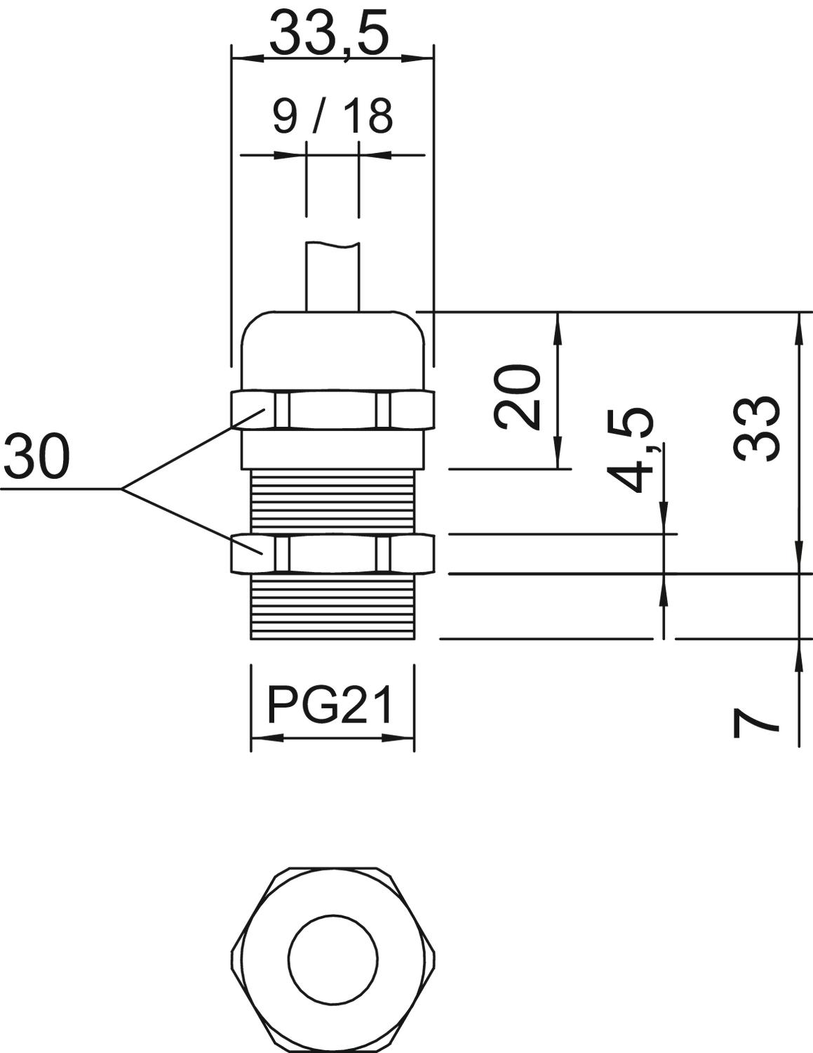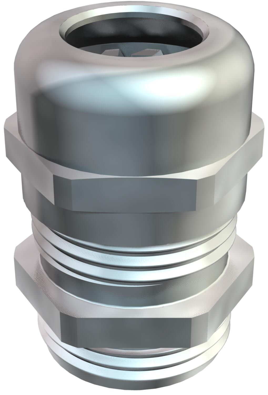 Anti-chocs non Avec contre-écrou non Bague d'étanchéité à usage multiple non Capacité d’étanchéité D max. 18 mm Capacité d’étanchéité D min. 9 mm Cote L1 7 mm Cote L2 4,5 mm Cote L3 20 mm Diamètre nominal du filetage 21 Dimension PG21 Dimension E 33,5 mm Dimension L max. 33 mm Eclateur antidéflagrant non Empreinte CO2 (GWP) du berceau à la porte 0,205 kg CO2e / 1 Pièce Filetage Pg 21 Indice de protection IP68 Longueur de filetage 7 mm Matériau laiton Méplat 30 Modèle droit Plage de températures d’utilisation max. 100 °C Plage de températures d’utilisation min. -20 °C Possibilité de décharge de traction oui Pour zone explosive sans Pour zone explosive gaz sans Pour zone explosive poussières sans Presse-étoupe divisible non Presse-étoupe pour câbles plats non Protection antiflexion non Renforcé par fibres de verre non Sans halogène non Surface nickelé Type d'étanchéité Bague d'étanchéité Type de filetage PG - Tous les types