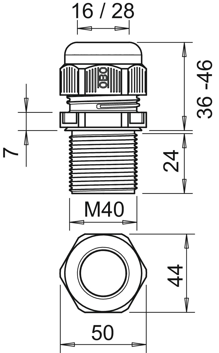 Anti-chocs non Avec contre-écrou non Bague d'étanchéité à usage multiple non Capacité d’étanchéité D max. 28 mm Capacité d’étanchéité D min. 16 mm Cote L1 24 mm Cote L2 7 mm Couleur noir Couple de serrage instable 10 Nm Diamètre nominal du filetage 40 Dimension M40 Dimension E 50 mm Dimension L max. 46 mm Dimension L min. 36 mm Eclateur antidéflagrant non Empreinte CO2 (GWP) du berceau à la porte 0,1941 kg CO2e / 1 Pièce Filetage M40 x 1,5 Indice de protection IP68 Longueur de filetage 24 mm Matériau Polyamide Méplat 44 Modèle droit Pas de filetage 1,8 mm Plage de températures d’utilisation max. 65 °C Plage de températures d’utilisation min. -20 °C Possibilité de décharge de traction oui Pour zone explosive sans Pour zone explosive gaz sans Pour zone explosive poussières sans Presse-étoupe divisible non Presse-étoupe pour câbles plats non Protection antiflexion non Renforcé par fibres de verre non Résistant aux flammes selon la norme VDE 0471/DIN 695 partie 2-1, température de test 650 °C Sans halogène oui Six pans cote sur angulaire 50 mm Type d'étanchéité Bague d'étanchéité Type de filetage métrique - Tous les types
