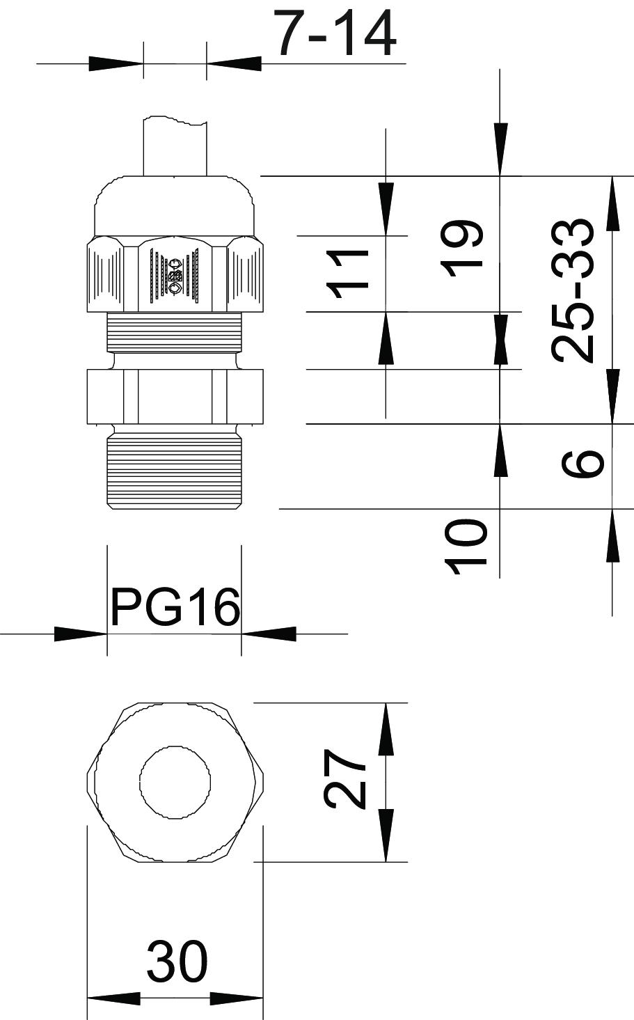 Anti-chocs non Avec contre-écrou non Bague d'étanchéité à usage multiple non Capacité d’étanchéité D max. 14 mm Capacité d’étanchéité D min. 7 mm Cote L1 10 mm Cote L2 6 mm Cote L3 19 mm Cote L4 11 mm Couleur blanc pur; RAL 9010 Couple de serrage instable 3,67 Nm Dimension PG16 Dimension E 30 mm Dimension L max. 33 mm Dimension L min. 25 mm Eclateur antidéflagrant non Empreinte CO2 (GWP) du berceau à la porte 0,0619 kg CO2e / 1 Pièce Filetage Pg 16 Indice de protection IP68 Longueur de filetage 10 mm Matériau Polyamide Méplat 27 Modèle droit Pas de filetage 1,41 mm Plage de températures d’utilisation max. 65 °C Plage de températures d’utilisation min. -20 °C Possibilité de décharge de traction oui Pour zone explosive sans Pour zone explosive gaz sans Pour zone explosive poussières sans Presse-étoupe divisible non Presse-étoupe pour câbles plats non Protection antiflexion non Renforcé par fibres de verre non Sans halogène oui Type d'étanchéité Bague d'étanchéité Type de filetage PG - Tous les types