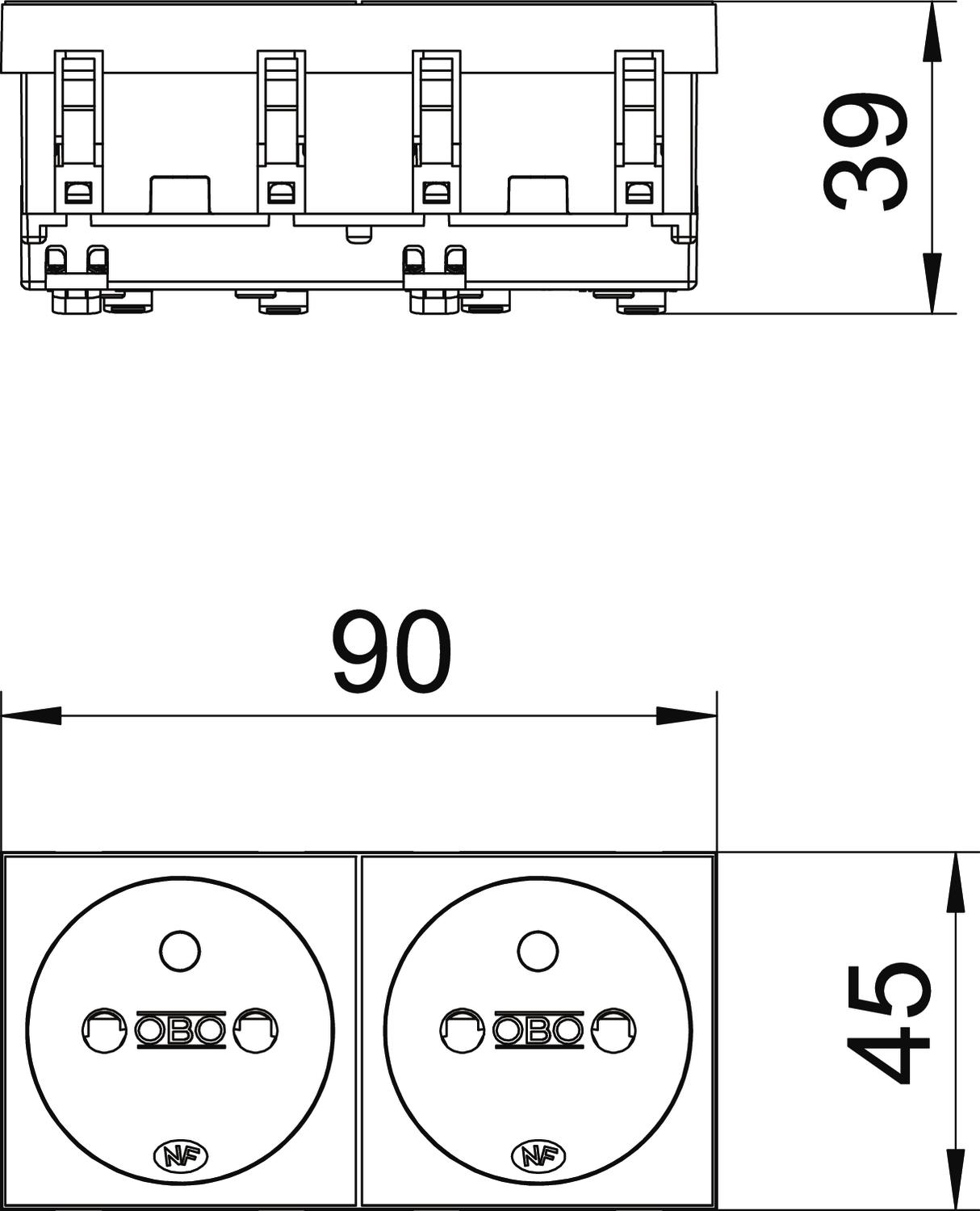 Alimentation électrique spéciale sans alimentation électrique spéciale Avec éclairage fonctionnel non Avec éclairage orientable non Avec fusible fin non Avec interrupteur marche/arrêt non Code non Couleur alu peint Courant nominal 16 A Couvercle Plaque centrale Couvercle rabattable non Dimension 250V, 10/16A Empreinte CO2 (GWP) du berceau à la porte 0,3729 kg CO2e / 1 Pièce Hauteur 45 mm Homologations NF Impression/marquage sans impression Indice de protection autres Insert central torsadé non Largeur 90 mm Matériau Polycarbonate Mécanisme de rejet non Modèle double 0° Modèle de la surface mat Modèle prises de courant NF Montage isolé non Nombre d'unités 2 Nombre de pôles 2 Parafoudre non Porte-étiquette non pour condition difficile (selon VDE) non Prises de courant Angle 0° Profondeur 39 mm Protection améliorée contre les contacts oui Protection contre les courants de défaut non Sans halogène oui Température de service max. 40 °C Température de service min. -5 °C Tension nominale 250 V Transparent non Type de fixation enclencher Type de montage Goulotte d'appareillage Type de raccordement Borne à fiche Verrouillable non Voyant de contrôle non - Tous les types