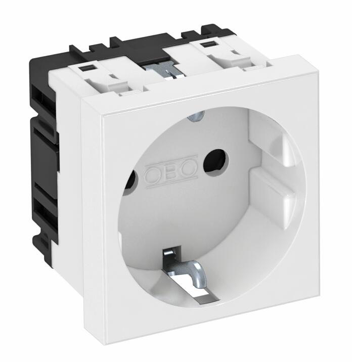Description du produitPrise avec contact de protection simple 0°, avec protection renforcée contre les contacts accidentels, avec bornes à fiche, 2 pôles,16 A, 250 V~, avec bornes de raccordement selon CEI 60884-1.