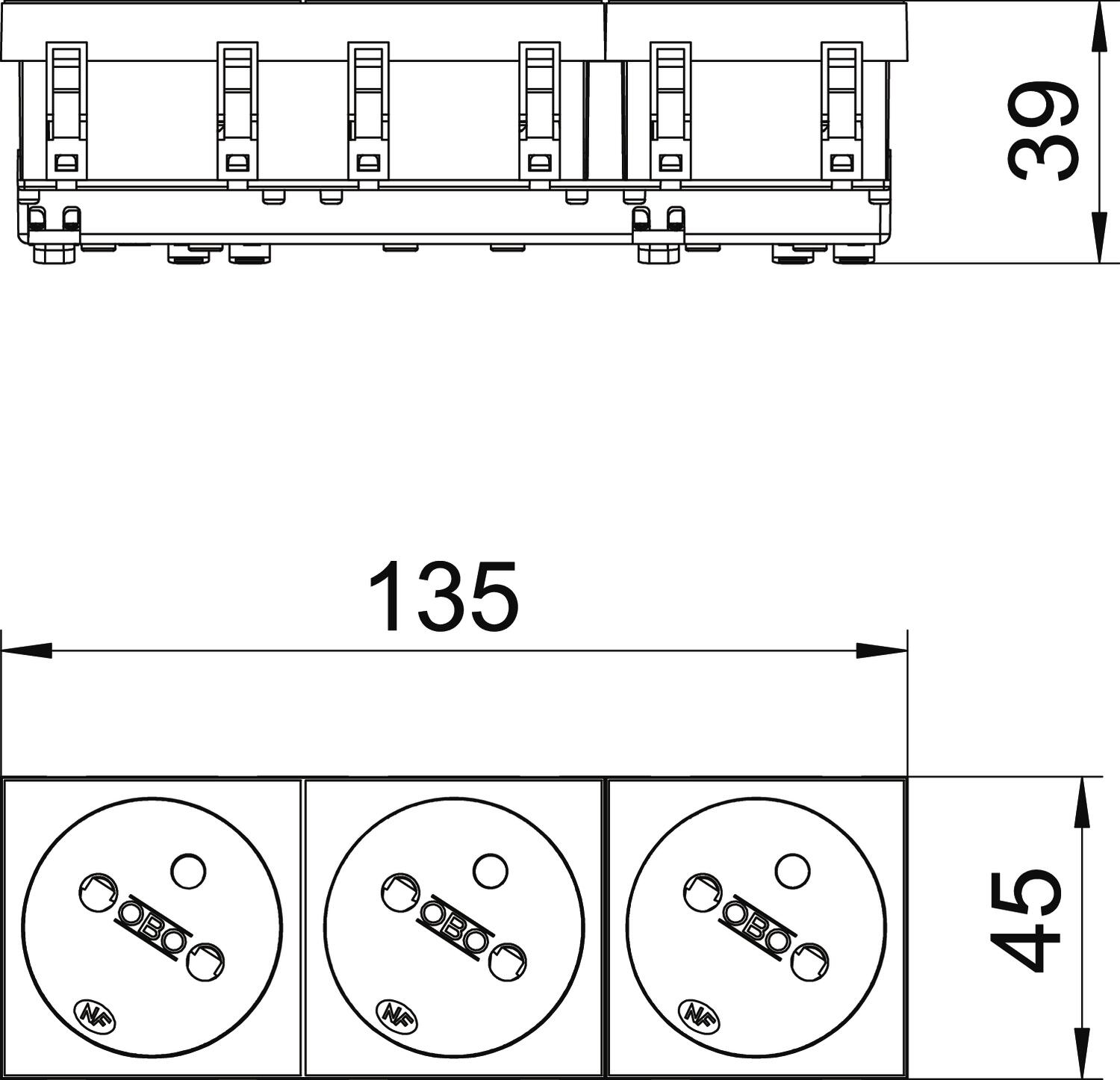 Alimentation électrique spéciale sans alimentation électrique spéciale Avec éclairage fonctionnel non Avec éclairage orientable non Avec fusible fin non Avec interrupteur marche/arrêt non Code non Couleur orange pur ; RAL 2004 Courant nominal 16 A Couvercle Plaque centrale Couvercle rabattable non Dimension 250V, 10/16A Empreinte CO2 (GWP) du berceau à la porte 0,4399 kg CO2e / 1 Pièce Hauteur 45 mm Homologations NF Impression/marquage sans impression Indice de protection autres Insert central torsadé oui Largeur 135 mm Matériau Polycarbonate Mécanisme de rejet non Modèle triple 33° Modèle de la surface mat Modèle prises de courant NF Montage isolé non Nombre d'unités 3 Nombre de modules (en cas de construction modulaire) 3 Nombre de pôles 2 Parafoudre non Porte-étiquette non pour condition difficile (selon VDE) non Prises de courant Angle 33° Profondeur 39 mm Protection améliorée contre les contacts oui Protection contre les courants de défaut non Sans halogène oui Température de service max. 40 °C Température de service min. -5 °C Tension nominale 250 V Transparent non Type de fixation enclencher Type de montage Goulotte d'appareillage Type de raccordement Borne à fiche Verrouillable non Voyant de contrôle non - Tous les types