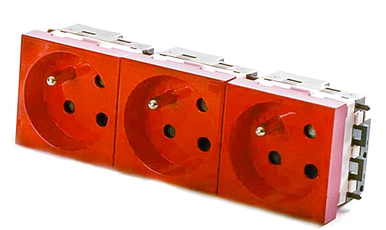 Description du produitPrise de courant triple CONEXEL avec fiche de terre, rouge.