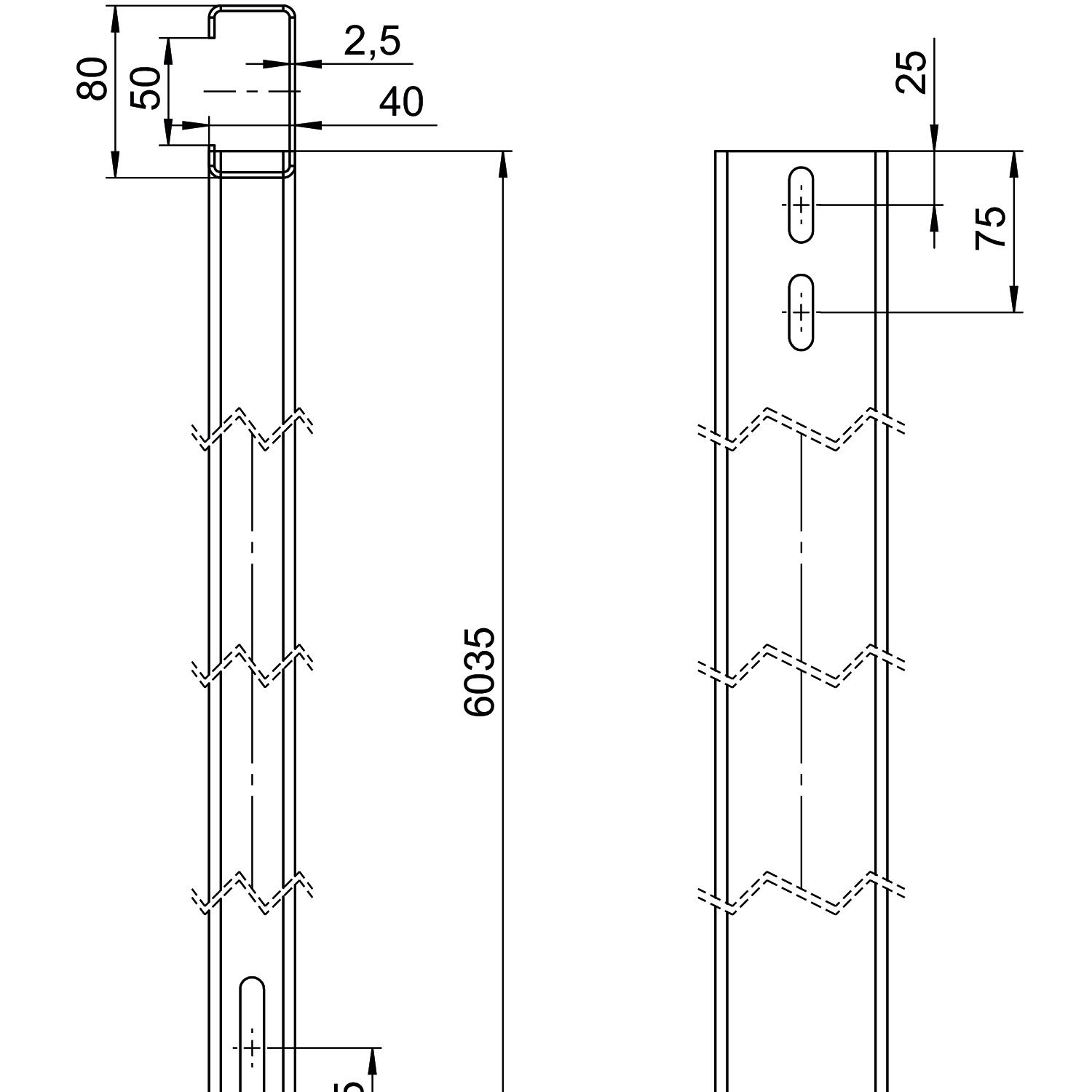 Couleur zinc Dimension 40x80x6035 Empreinte CO2 (GWP) du berceau à la porte 41,5322 kg CO2e / 1 Pièce Goulotte de câbles en option Non Goulotte de câbles intégrée Non Hauteur 80 mm Largeur 40 mm Largeur de module max. 1310 mm Largeur de module min. 1300 mm Longueur 6035 mm Matériau Acier Module d’inertie Wx 10600 mm³ Module d’inertie Wy 5200 mm³ Surface galvanisé à chaud par trempage - Tous les types