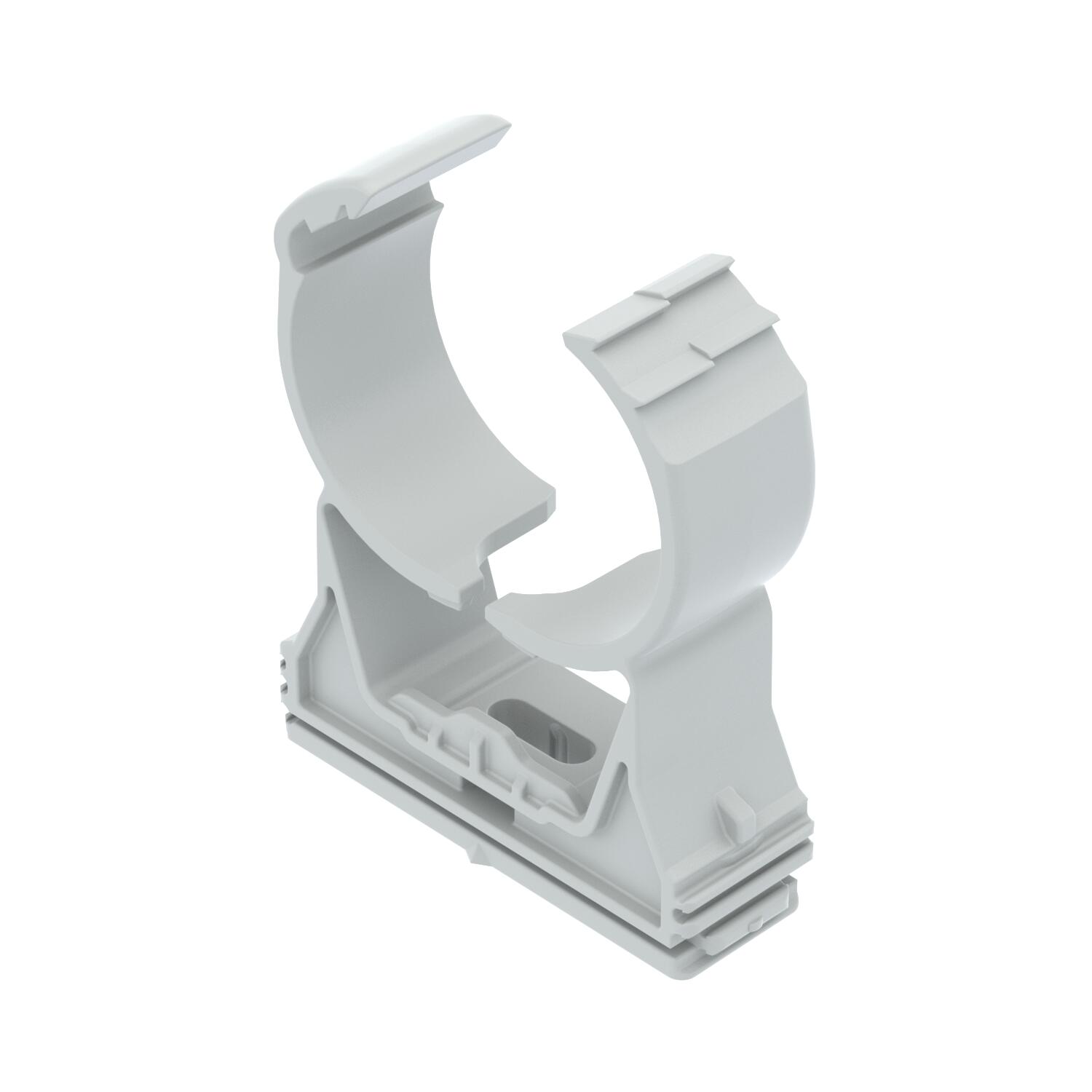Description du produitHighly stressable clip for accepting plastic or metal electrical and sanitary pipes as well as the electrical installation pipe Quick pipe. Universal fastening options on walls, ceilings and steel constructions, both indoors and outdoors. Flexible clamping range of several millimetres. Toolless pipe mounting. Connectable to each other to Ø 32 mm, also with the OBO Quick or Multi Quick clip. For variable distances and clip quantity mountable on a profile rail.