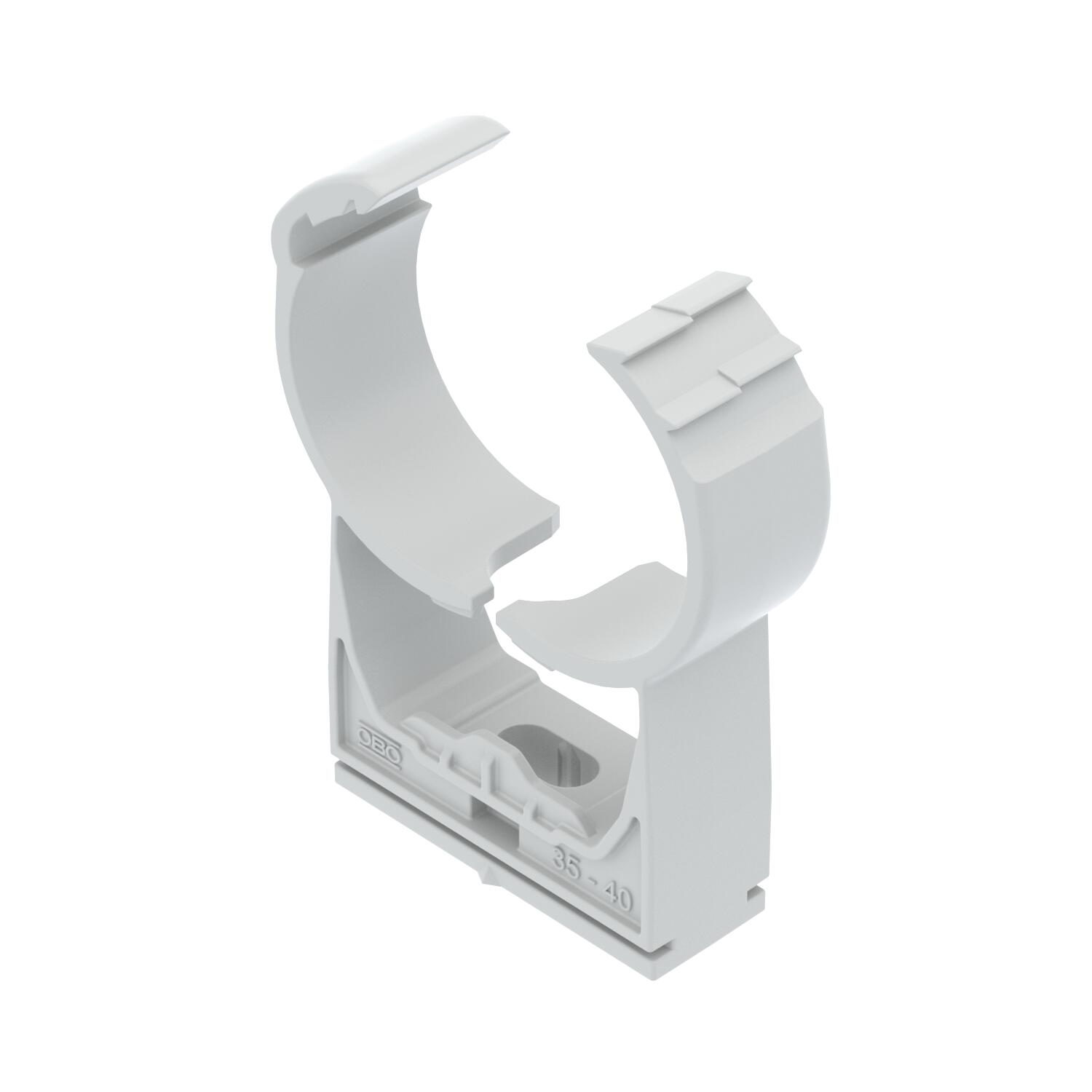 Description du produitHighly stressable clip for accepting plastic or metal electrical and sanitary pipes as well as the electrical installation pipe Quick pipe. Universal fastening options on walls, ceilings and steel constructions, both indoors and outdoors. Flexible clamping range of several millimetres. Toolless pipe mounting. Connectable to each other to Ø 32 mm, also with the OBO Quick or Multi Quick clip. For variable distances and clip quantity mountable on a profile rail.