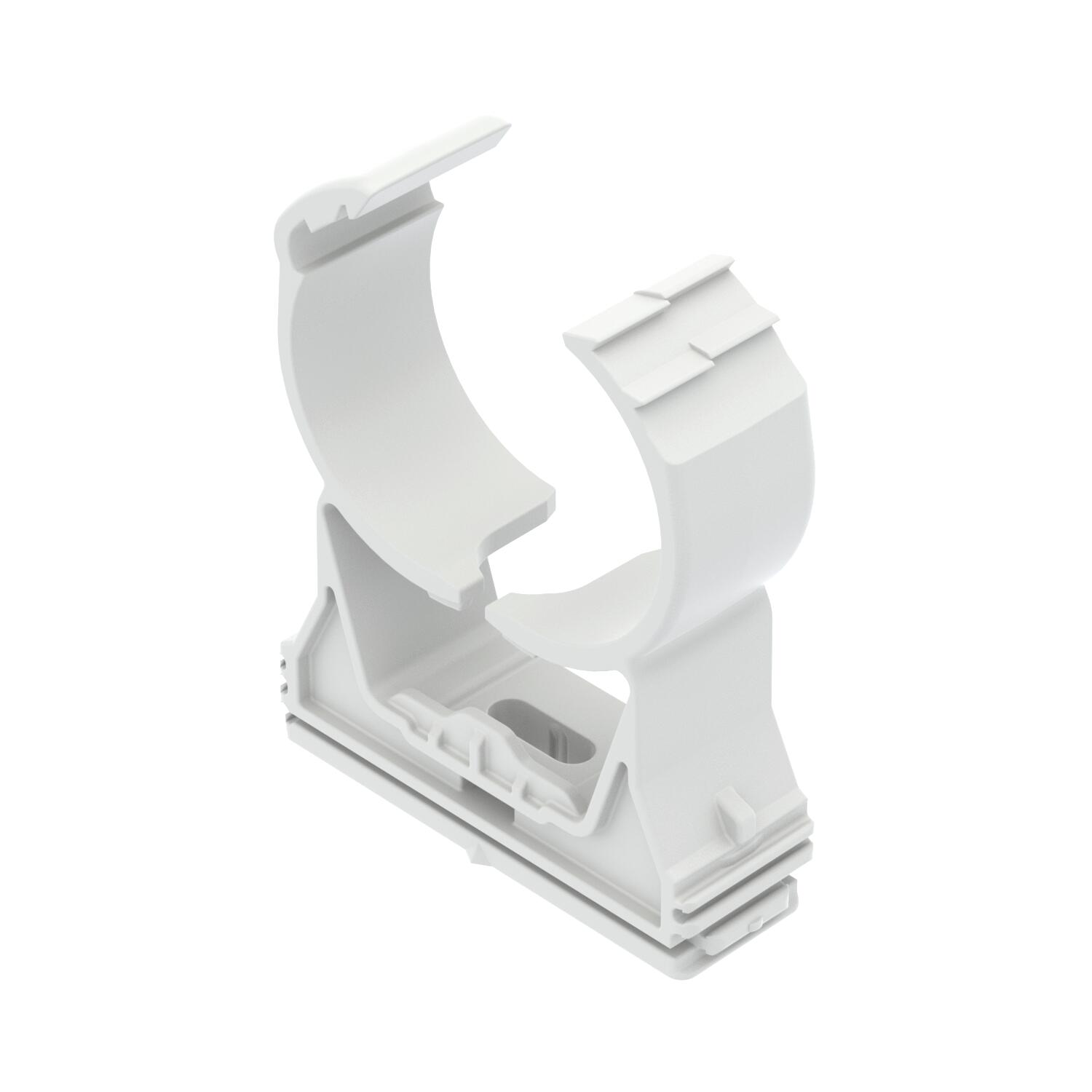 Description du produitHighly stressable clip for accepting plastic or metal electrical and sanitary pipes as well as the electrical installation pipe Quick pipe. Universal fastening options on walls, ceilings and steel constructions, both indoors and outdoors. Flexible clamping range of several millimetres. Toolless pipe mounting. Connectable to each other to Ø 32 mm, also with the OBO Quick or Multi Quick clip. For variable distances and clip quantity mountable on a profile rail.