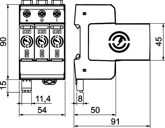 • Discharge capacity up to 6.25 kA (10/350) and 60 kA (8/20) per pole