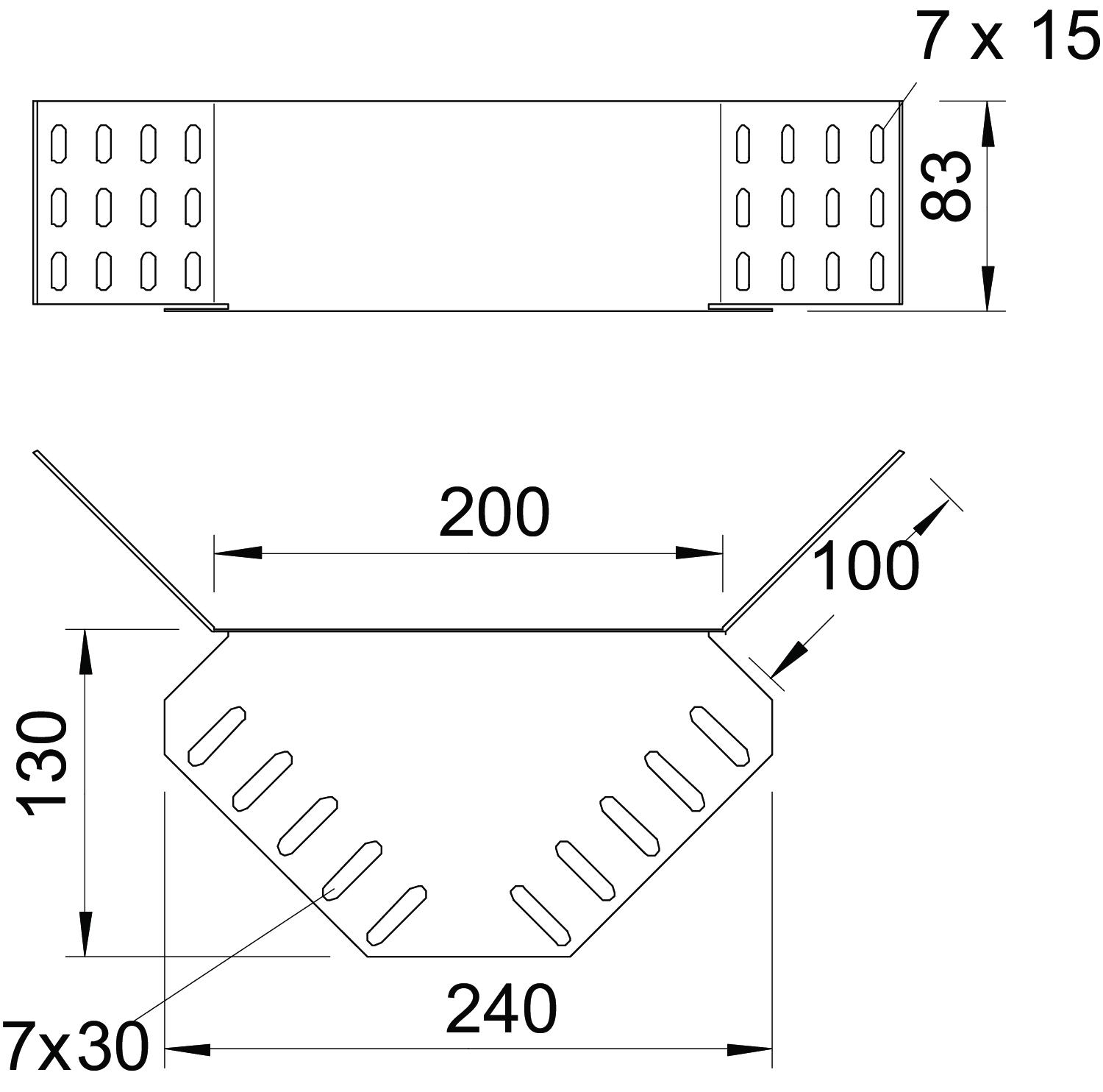 Description du produitEclisse d'angle pour chemins de câbles d'une hauteur d'aile de 85 mm.