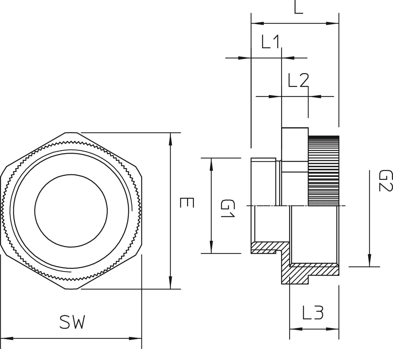 Cote D 11 mm Cote L 20,5 mm Cote L1 8 mm Cote L2 5 mm Cote L3 10,5 mm Couleur gris clair; RAL 7035 Dimension M16-M20 Dimension du filetage métrique extérieur 16 Dimension du filetage métrique intérieur 20 Dimension E 26,5 mm Eclateur antidéflagrant non Empreinte CO2 (GWP) du berceau à la porte 0,0176 kg CO2e / 1 Pièce Matériau Polyamide Méplat 24 Nickelé non Type de filetage, filetage extérieur métrique Type de filetage, filetage intérieur métrique - Tous les types
